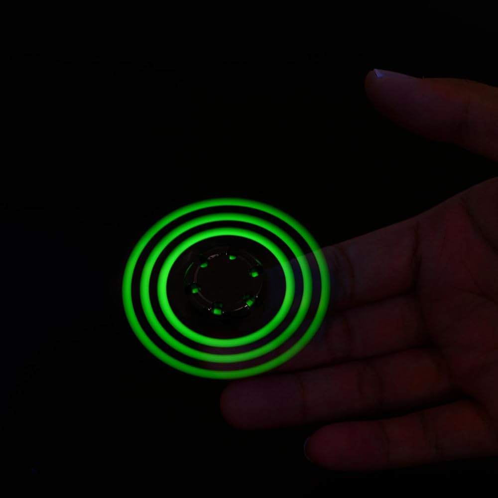 The fidget spinner is made of high-quality metal material. The materials are strong and tenacity, and the high-quality steel bearings provide a smoother, less noisy experience while spinning. Adult fidget spinners can glow in the dark and change according to the rotation speed. Just press the fidget spinner to make it spin and look stunning in the dark.