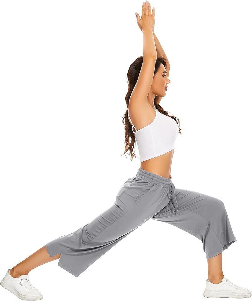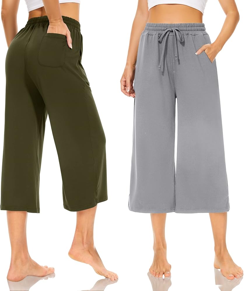 • Wide leg Capri Pants for Women: Flowy wide leg sweatpants featured in a high elastic waistband with adjustable drawstring allows you can for custom fit. Women's capri pants with a side split detail, cute design. Matching crop top, shirt and jacket with yoga pants with pockets for women to get a casual daily look