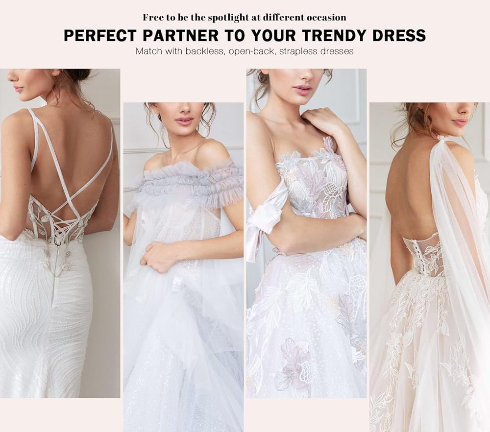 U-Plunge Neckline enhances and shows your charming and sexy cleavage, perfect for the deep v wedding dress, frontless party dress , low-cut outfits, off shoulder gowns and etc.