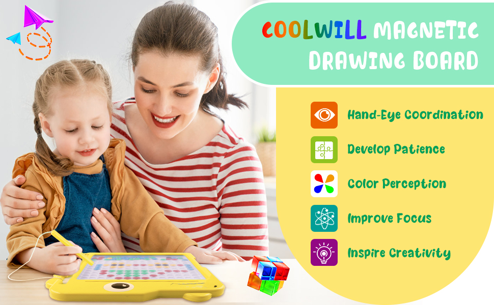 • 3. [تحفيز الخيال والانتباه] - يمكن للوحة النقاط المغناطيسية هذه أن تشجع خيال طفلك ورسم الإبداع. خفيفة الوزن وسهلة الحمل في القطار أو الحافلة أو الطائرة
