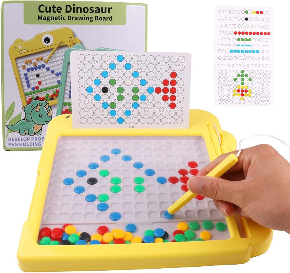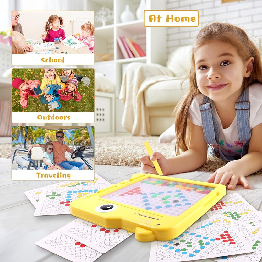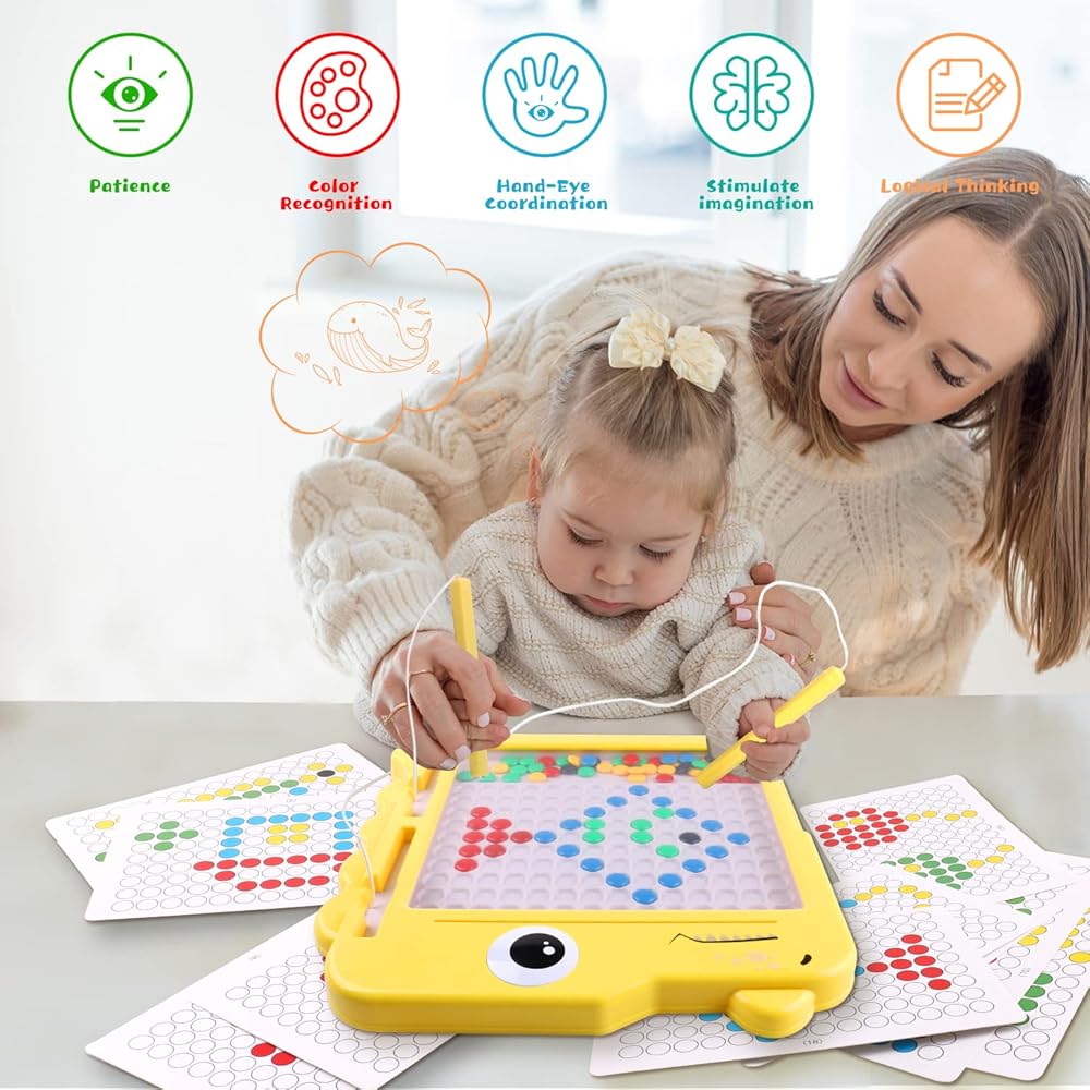 لوحة رسم مغناطيسية للأطفال، لوحة رسم منقطة مع خرز ملون وقلم مغناطيسي، ألعاب فنية تعليمية من مونتيسوري للتعلم المبكر لعمر 3 سنوات فما فوق هدية عيد ميلاد للأطفال الصغار.