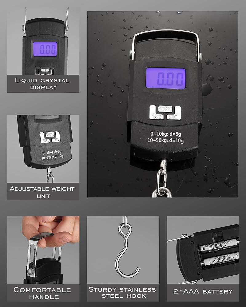 • جعل الوزن أسهل: يستخدم ميزان الرافعة الرقمي هذا شاشة LCD عالية الدقة تعرض أرقامًا واضحة ليلاً ونهارًا، ويقيس بدقة من 0.2 رطل إلى 110 رطل، مما يجعله أداة الوزن المثالية لقياس صيدك (بطاريتان AAA غير متضمنتين).