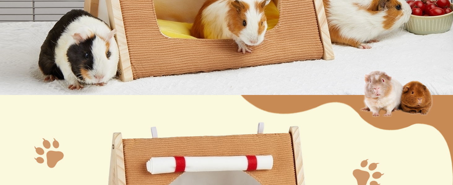 • هيكل مثلث ثابت: يتكون سرير مخبأ الخنازير الغينية هذا من هيكل خشبي مثلث وخيمة مصنوعة من مادة مخملية كريستالية، وهي مستقرة وقوية، على عكس أسرة الخنازير الغينية الأخرى غير المدعومة المتوفرة في السوق والتي لا يمكنها الحفاظ على شكلها ويمكن ضربها بسهولة. زيادة.