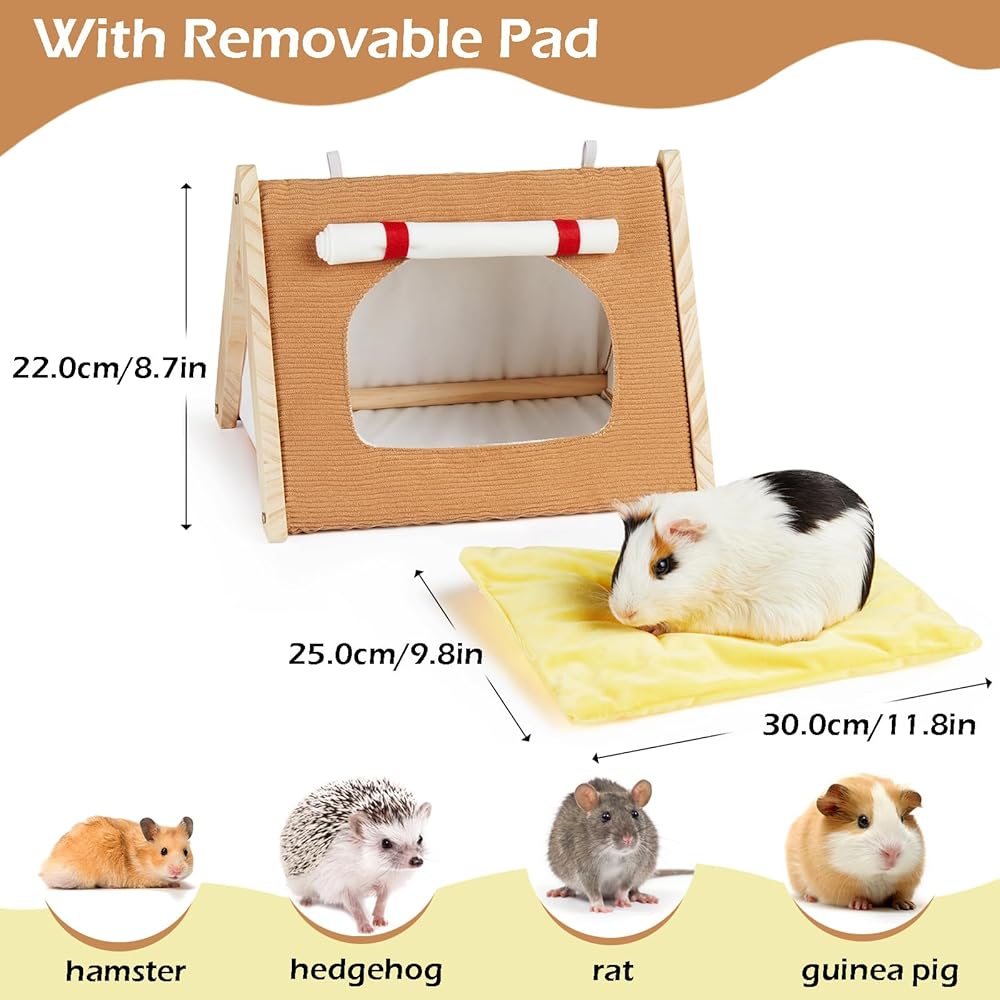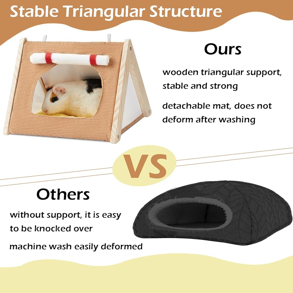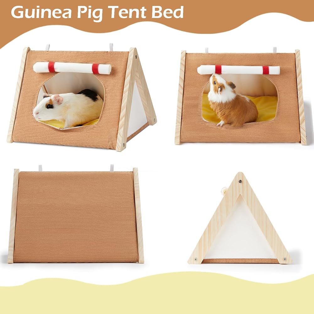 خيمة مخبأ خنزير غينيا من جيفند، خيمة سرير خشبية مثلثة لخنازير غينيا، موئل قوي لخنازير غينيا مع حصيرة قابلة للإزالة، مخبأ القنفذ مع ستائر، سرير بيت الحيوانات الصغيرة لفئران الهامستر