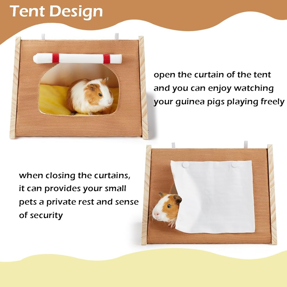 • تصميم تفاعلي: يحتوي موطن خنزير غينيا هذا على ستارة باب، مما يوفر لحيواناتك الأليفة الصغيرة راحة خاصة وشعورًا بالأمان عند إغلاقها. افتح ستارة الخيمة ويمكنك الاستمتاع بمشاهدة خنازيرك الغينية وهي تلعب بحرية في الخيمة.