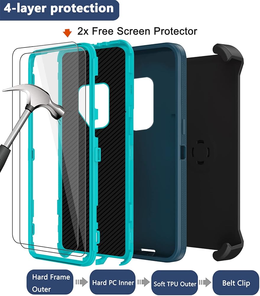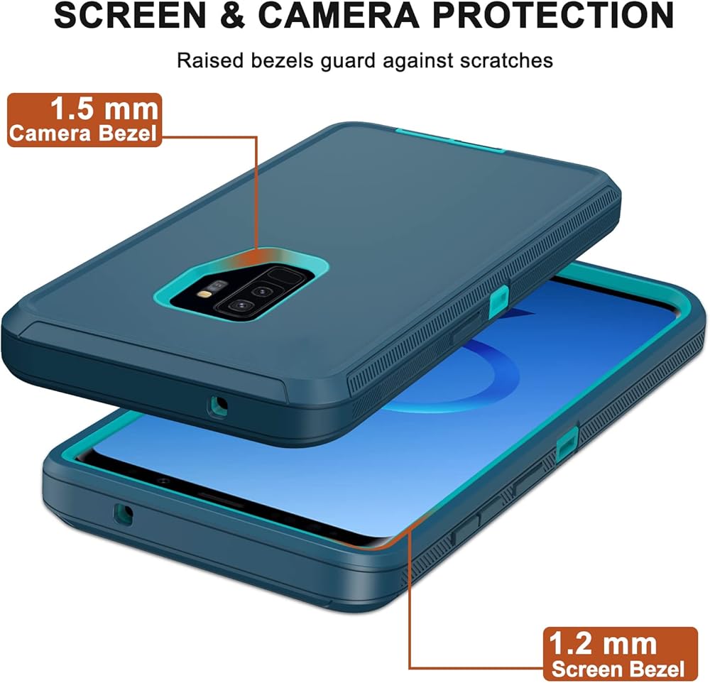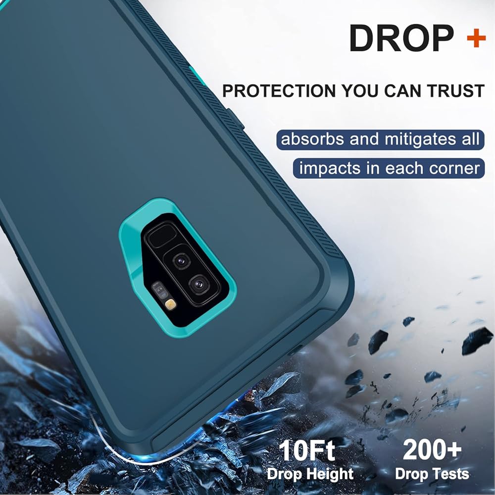 حماية من الدرجة العسكرية: توفر حافظة Galaxy S9 Plus 3 في 1 حماية لتغطية الجسم بالكامل بمقدار 360 درجة. بولي كربونات صلب هجين ممتاز (PC) + بولي يوريثين لدن بالحرارة ناعم (TPU/سيليكون). يفي بالمعايير العسكرية ويحمي هاتفك جيدًا من السقوط من ارتفاع يصل إلى 3 أمتار (10 أقدام).