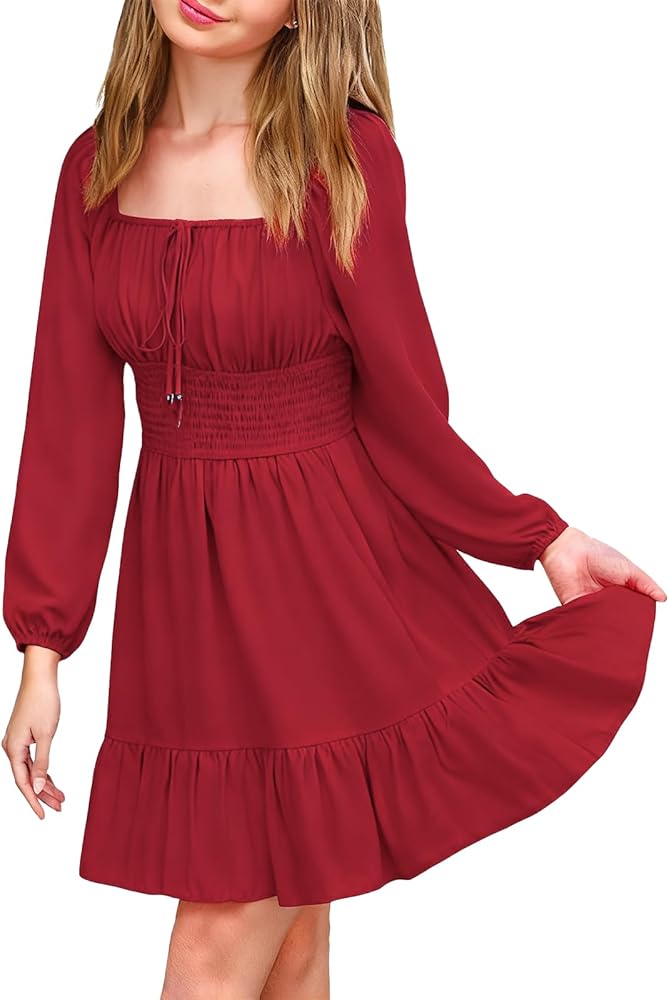 • 【تصميم متعدد الاستخدامات】فستان الفتيات الخاص بنا، مصنوع من قماش فاخر، ويتميز برقبة على شكل حرف U يمكن أن تتحول إلى نمط أنيق بكتف واحد، يكتمل بتفاصيل رائعة.