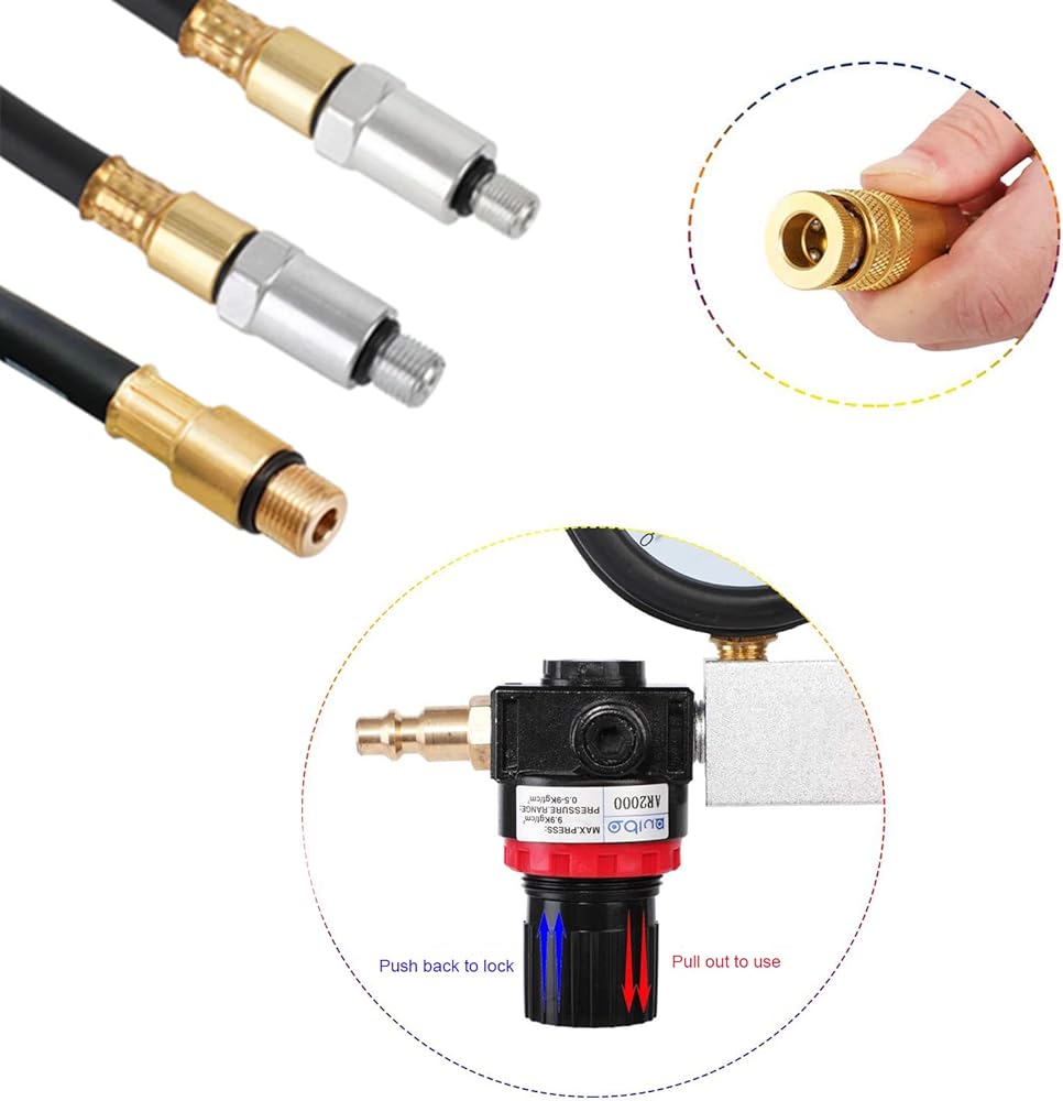 4️⃣ مجموعة أجهزة قياس الضغط المزدوجة: يوجد سدادة هواء على الطراز الأمريكي، وصمام تنظيم الضغط، وجسم مشعب من الألومنيوم، ومقياس ضغط الأسطوانة، ومقياس تسرب الأسطوانة، وخرطوم راتينج النايلون المطاطي بطول 19 بوصة مع قارنة توصيل سريعة على المجموعة. يعتمد المقياسان على غطاء مطاطي.