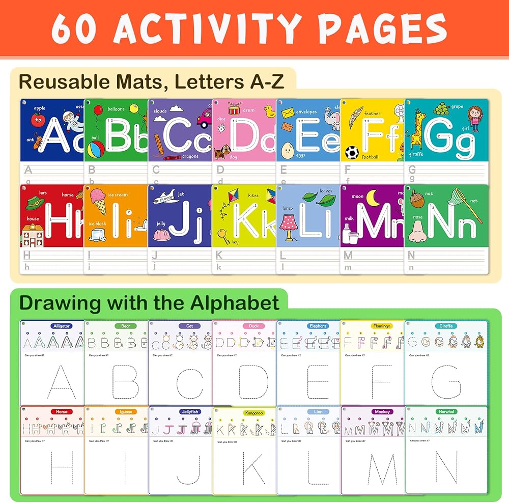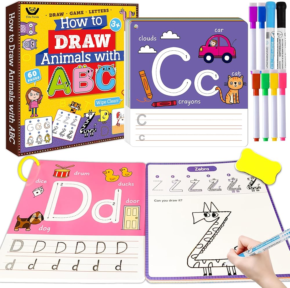 أنشطة التعلم لمرحلة ما قبل المدرسة من Elite Panda، كيفية الرسم بالأبجدية، كتاب تتبع الحروف للأطفال الذين تتراوح أعمارهم بين 3-5 سنوات، مجموعة أدوات التلوين التعليمية للأطفال الصغار، لوازم الحرف الفنية، هدايا الألعاب للأولاد والبنات بعمر 4-6 سنوات