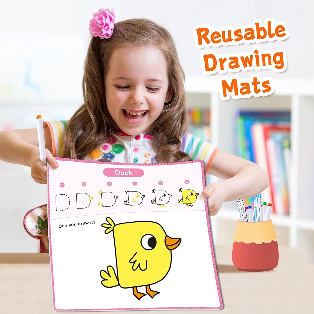 بطاقات قابلة لإعادة الاستخدام تطلق العنان للإبداع - مجموعة تتبع الحروف الأبجدية والرسم، وممارسة المهارات على الوجهين. تحويل تعلم الحروف الأبجدية إلى فن بهيج. على سبيل المثال، لنبدأ بالحرف A، وقبل أن تعرفه، سنحوله إلى تمساح لطيف! كم ذلك رائع؟ من خلال ست خطوات بسيطة فقط، دعونا ننشئ بعض الرسومات الرائعة معًا أثناء تعلم الحروف الأبجدية!