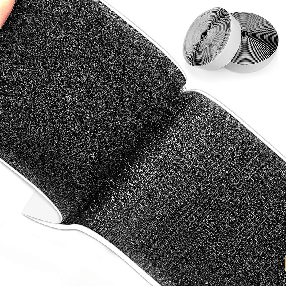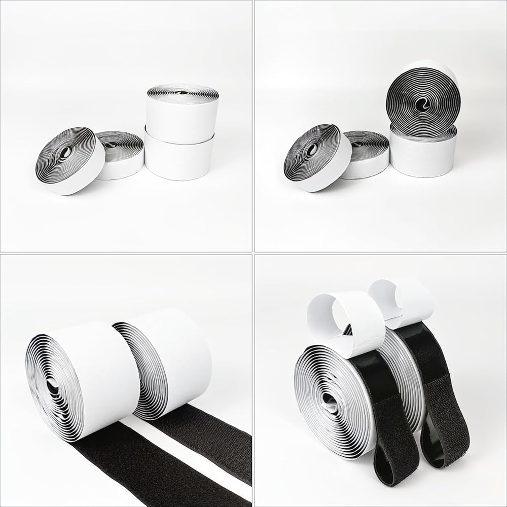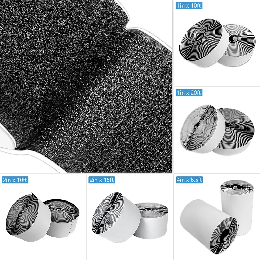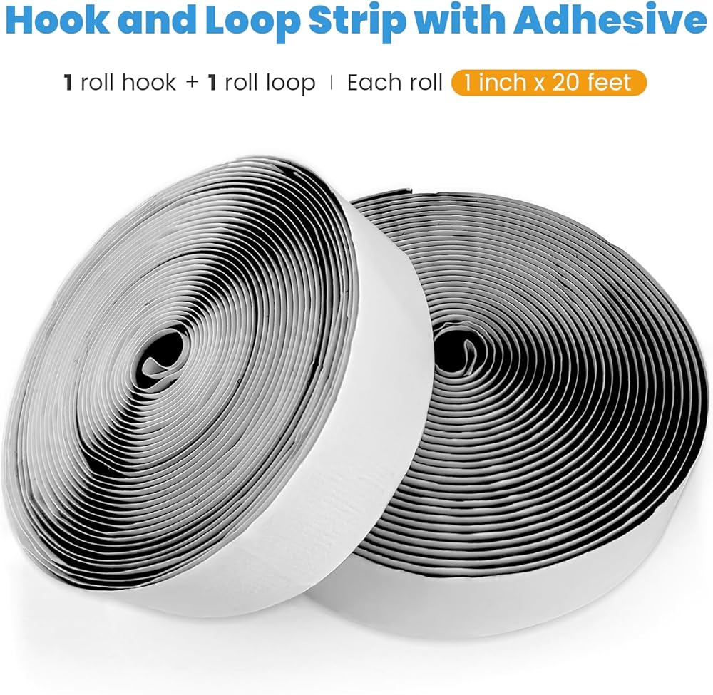 الحجم والكمية - شريط لاصق فيلكرو، مع دعامة لاصقة. يوجد لفتان إجمالاً، وخطاف دوار واحد وحلقة دوارة واحدة، عرض كل لفة 5 سم، وطول 10 أقدام.