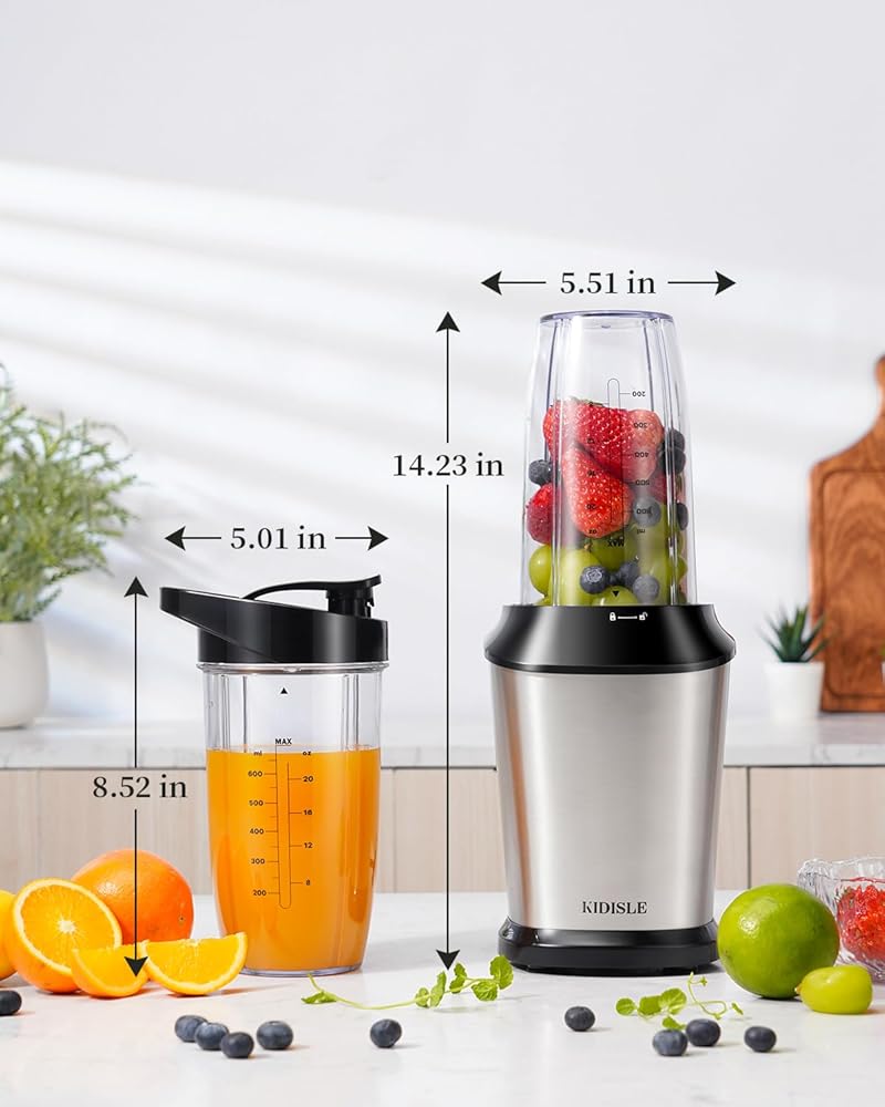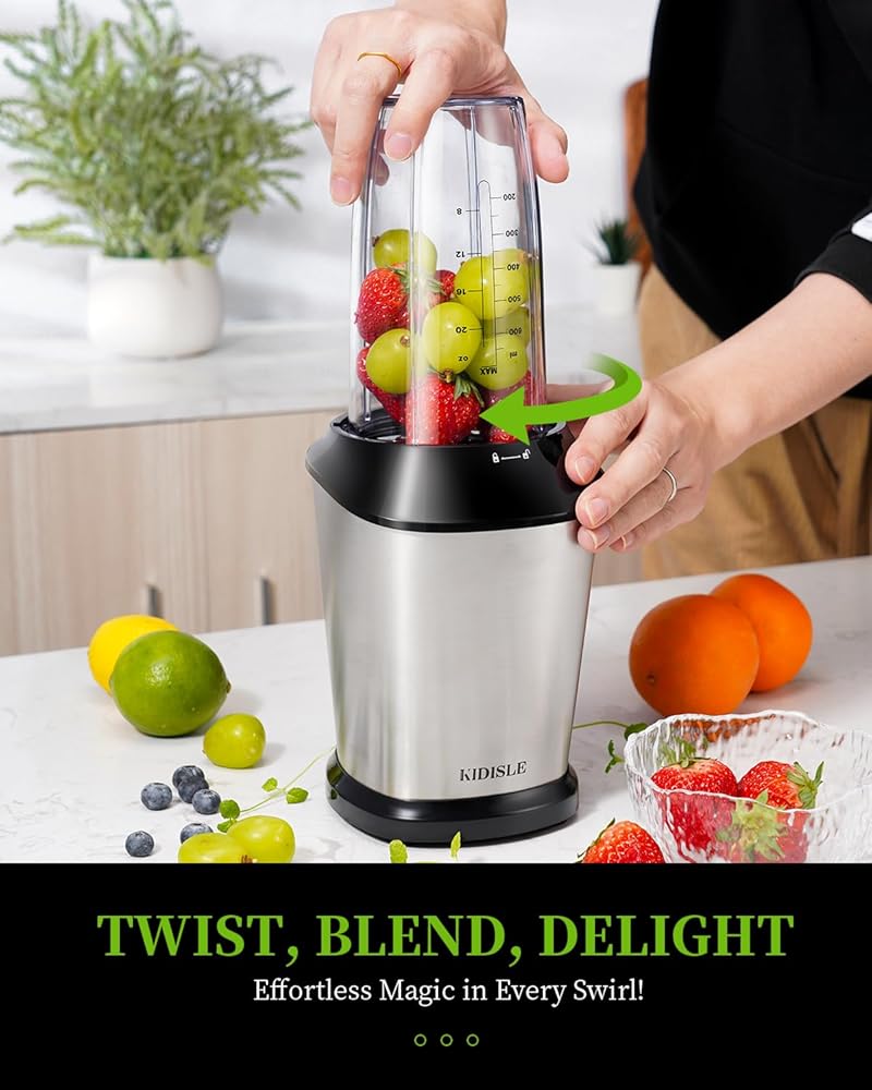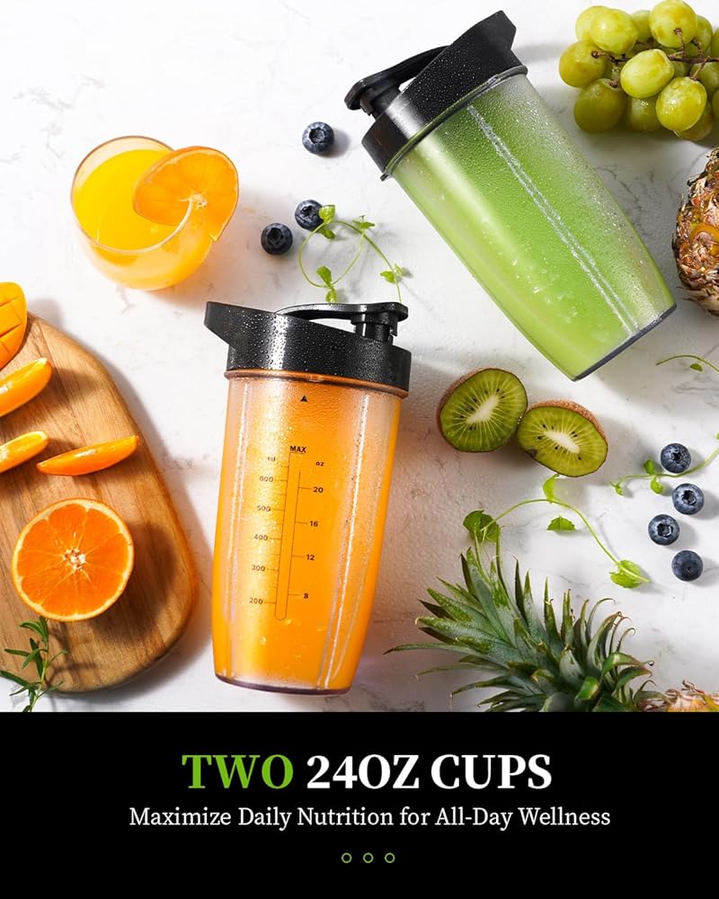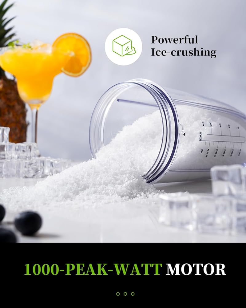 【خلاط عصير قوي】خلاط عصير بقوة 1000 واط للمخفوقات والعصائر مع شفرة مطورة، يسحق الفواكه والخضروات بسرعة، مما يسمح لخلاطك الشخصي بتوسيع إبداعك في المطبخ.