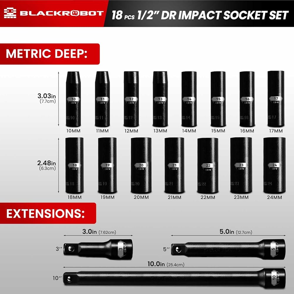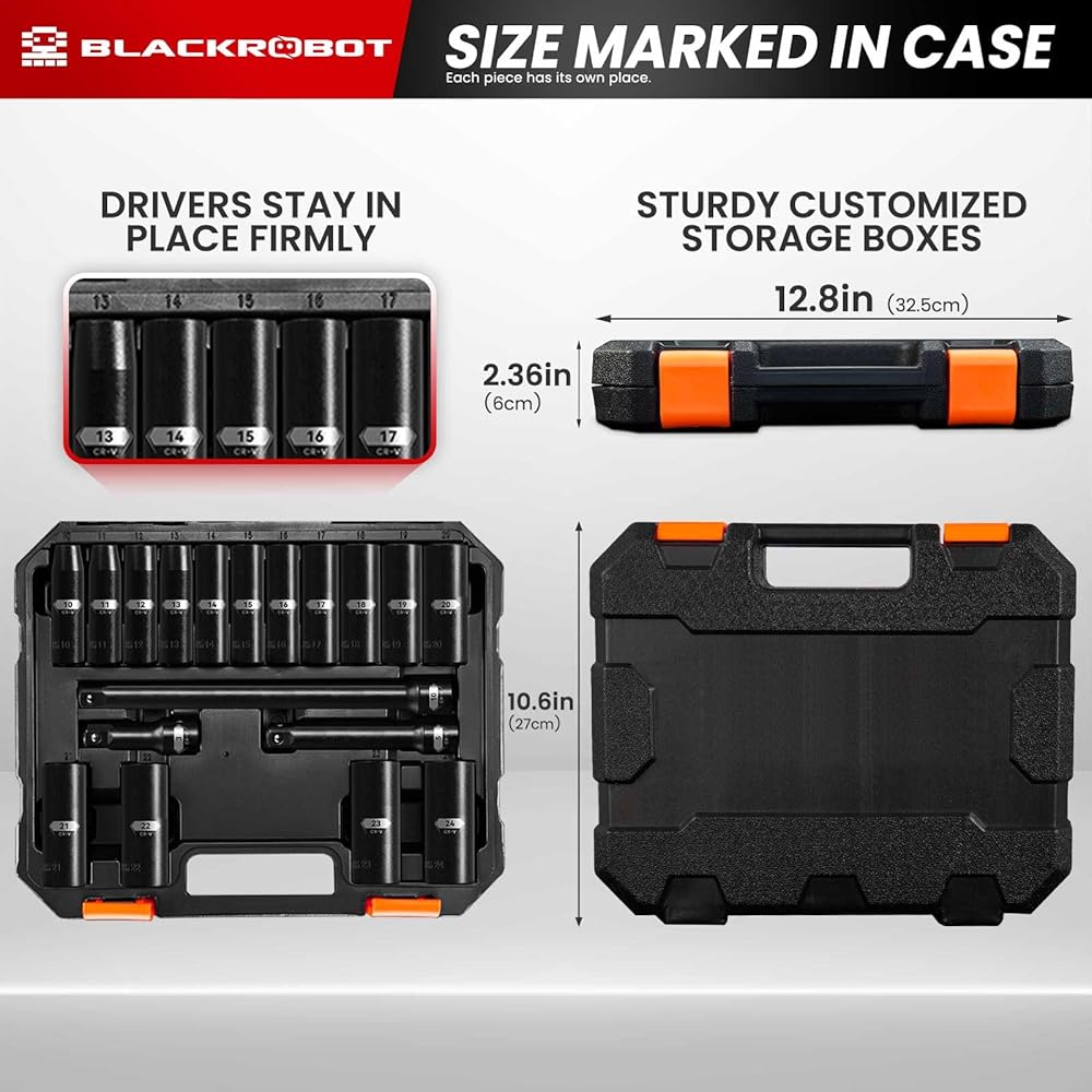 【وعدنا】في BLACKROBOT، نقدم ضمانًا لمدة عام وخدمة على مدار الساعة طوال أيام الأسبوع. إذا واجهت أي مشاكل أثناء استخدام مجموعة المقابس المترية العميقة، فلا تتردد في الاتصال بنا.