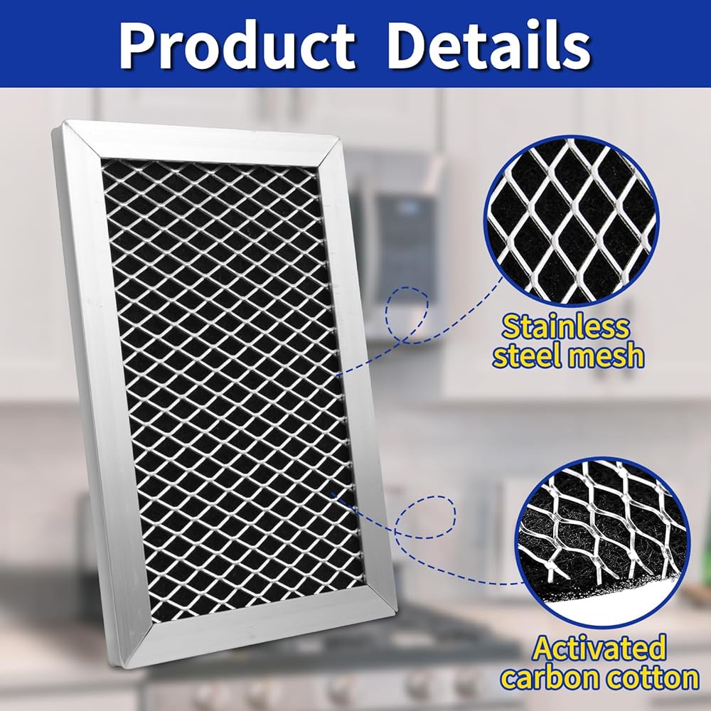• 【Microwave Recirculating Charcoal Filter Size】The dimensions of this charcoal replacement filter are 3-7/8" x 6-1/8" x 3/8" (Thickened Aluminum Frame). Before making a purchase, make sure to confirm the dimensions of your current activated charcoal filter. This replacement filter for GE JX81J effectively eliminates unwanted odors and pollutants in your microwave's air circulation system;
