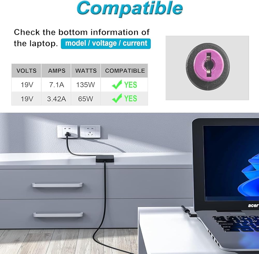 الإدخال: 100-240 فولت 50/60 هرتز؛ الإخراج: 19 فولت-7.1 أمبير 135 وات؛ طرف الموصل: 5.5*1.7 مم. يرجى تمزيق فيلم المنتج للتحقق من العلامة التجارية بعد استلام البضائع.