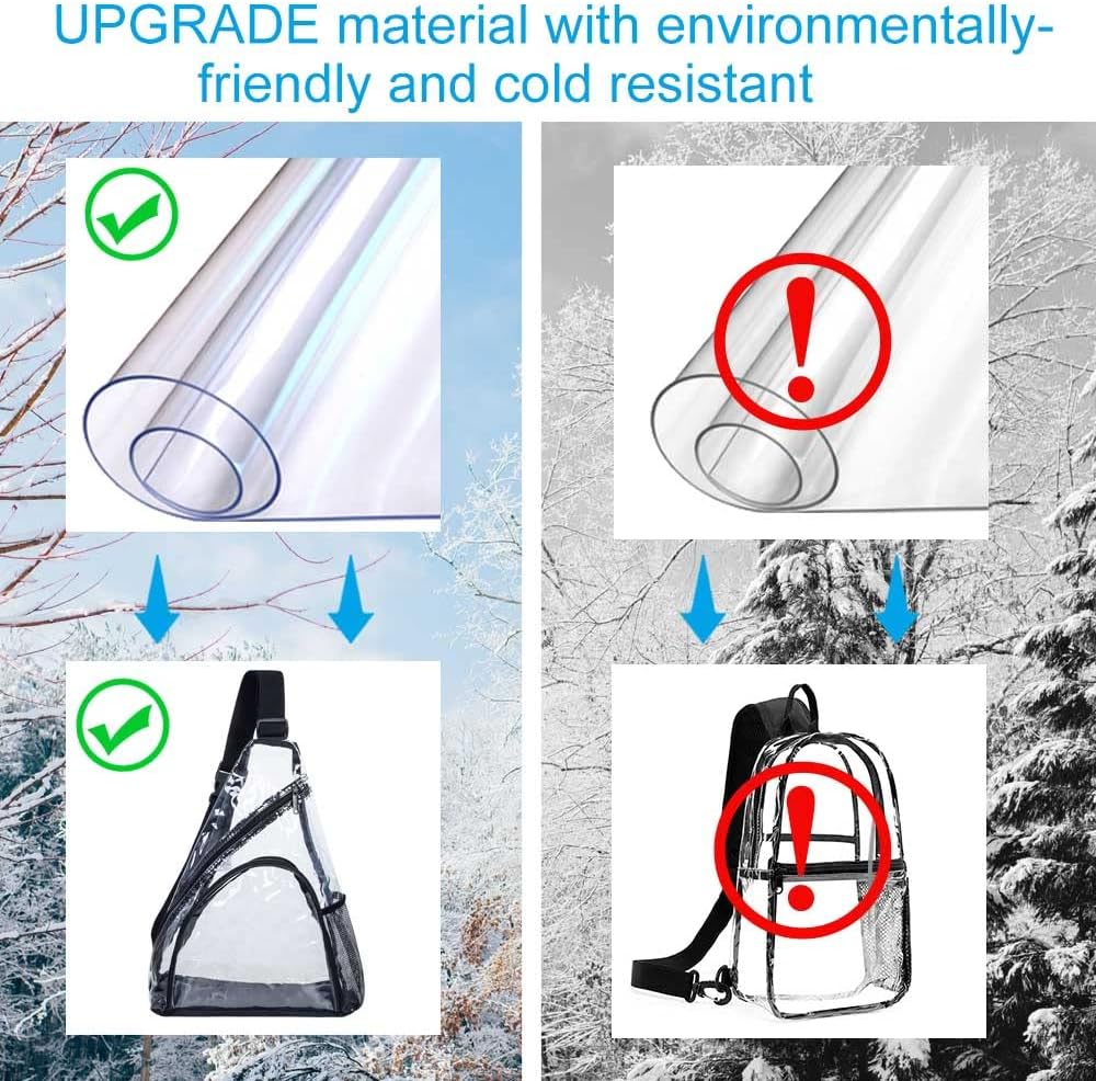 مادة مطورة: تم تخصيص مادة هذه الحقيبة الشفافة لتكون صديقة للبيئة ومقاومة للبرد، وهي آمنة لصحتك ولا تقلق من أنها ستتشقق في الشتاء البارد.