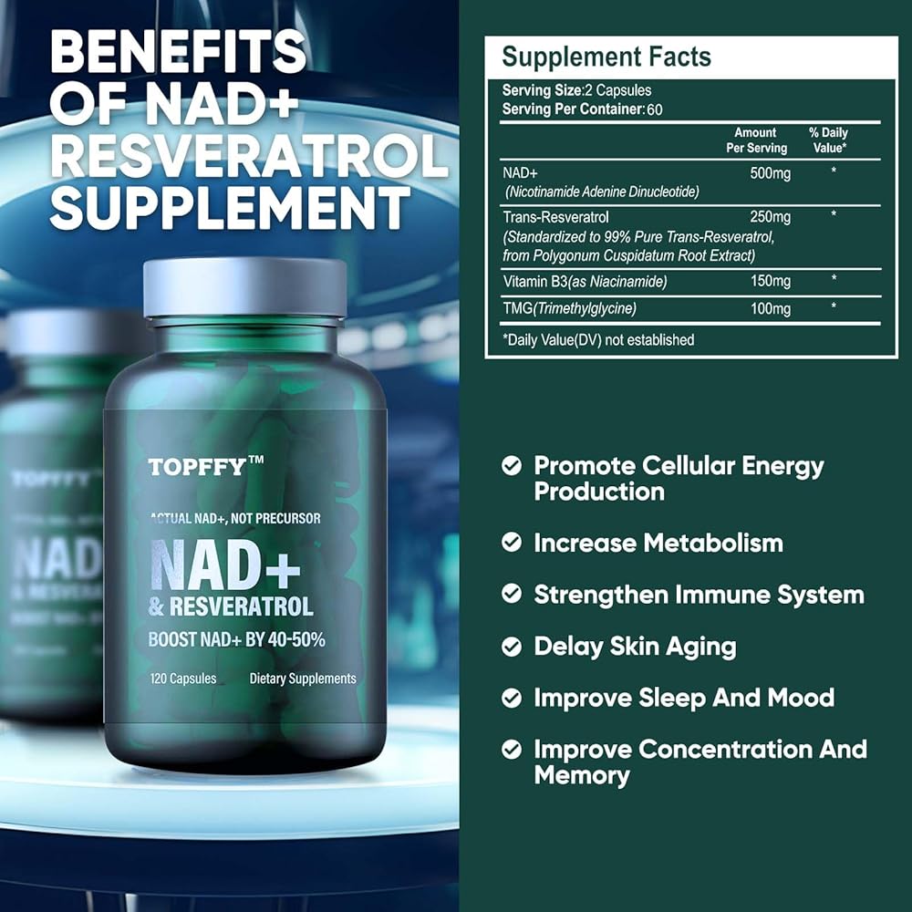 1. Powerful Formulas -- 500 mg NAD+ plus 250 mg TMG per softgel.