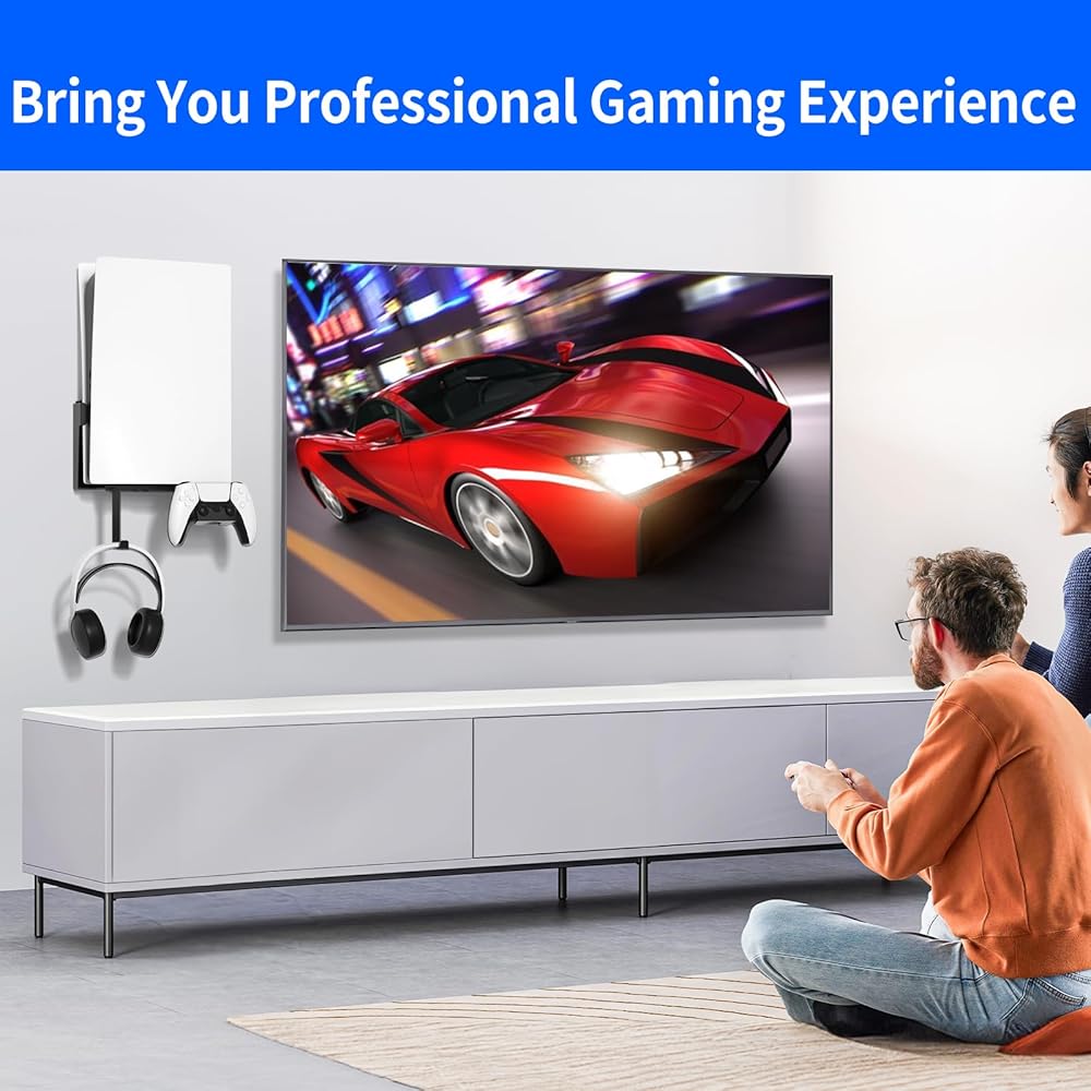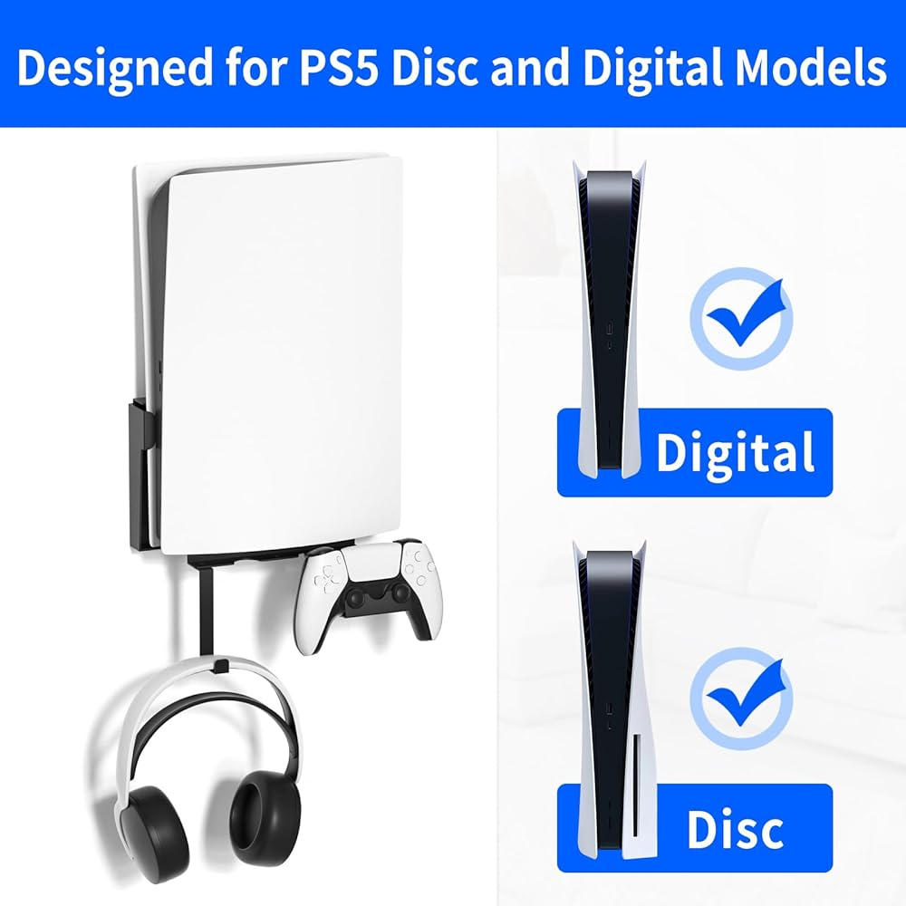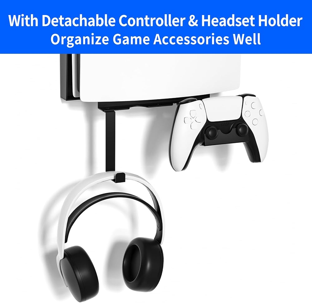طقم تثبيت على الحائط من Chunxiao Metal Steel PS5 لجهاز Playstation 5 قرص ورف الإصدار الرقمي مثبت على الحائط بالقرب من التلفزيون مع حامل وحدة التحكم وشماعة سماعة الرأس لحامل وحدة التحكم PS5