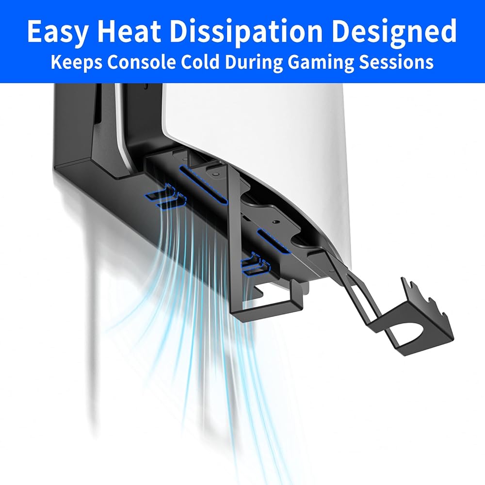 حافظ على التبريد: تصميم فتحات تبديد الحرارة في الجزء الخلفي والسفلي من حامل الحائط لجهاز بلاي ستيشن 5، حل مشكلة تبديد الحرارة في الجهاز بشكل مثالي، والحفاظ على وحدة التحكم الخاصة بك باردة أثناء جلسات اللعب الطويلة.