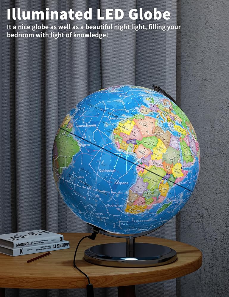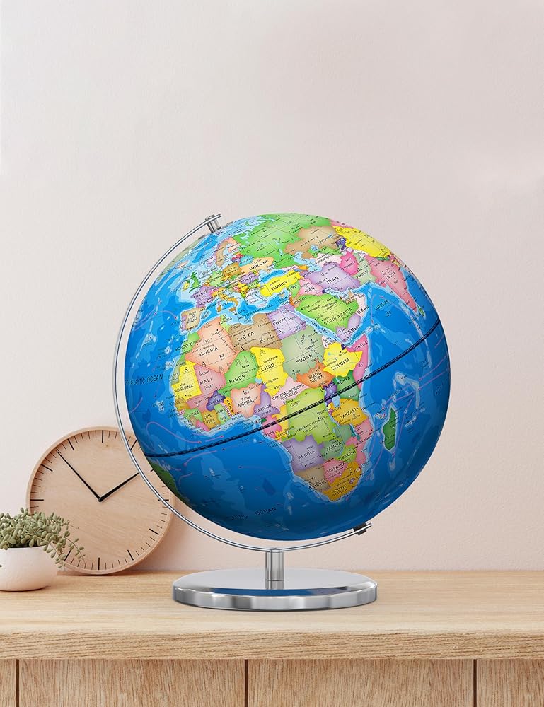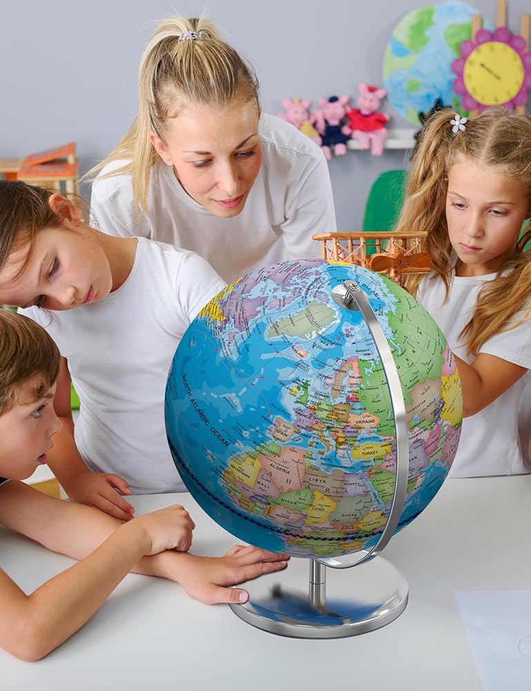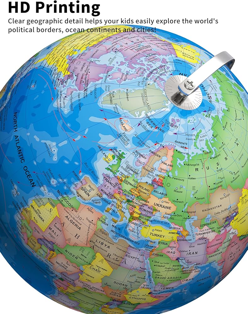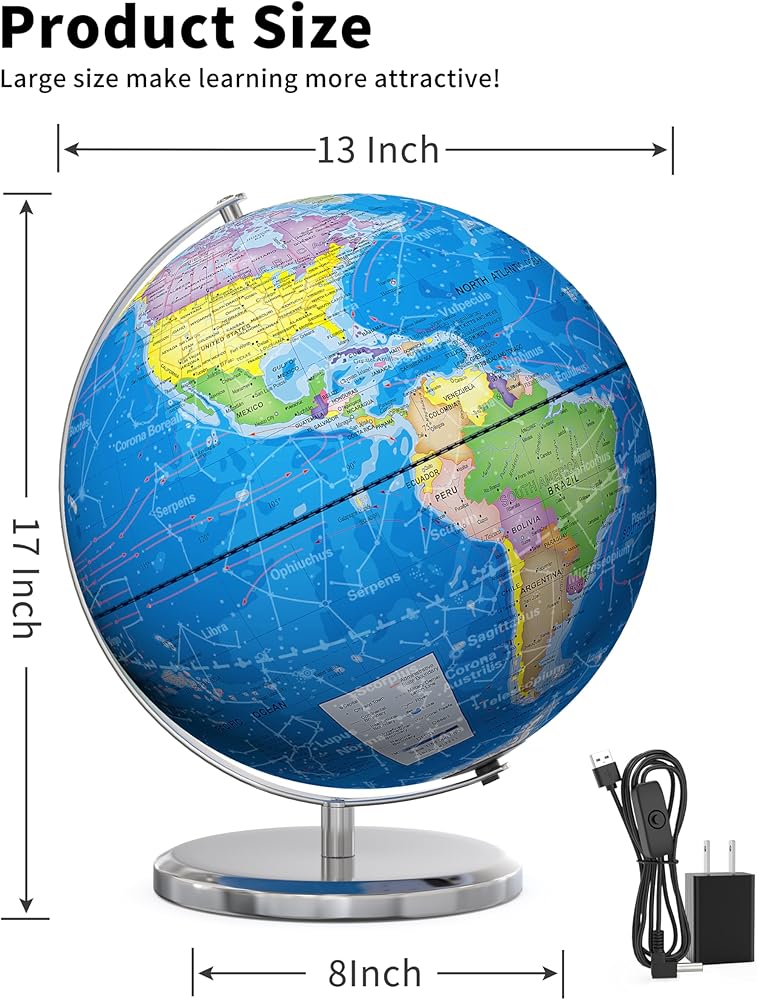 ديكور كبير ورائع - يبلغ طول الكرة الأرضية التعليمية 43.18 سم وقطرها 33.02 سم، وهي إضافة جميلة لأي غرفة معيشة أو فصل دراسي أو سطح مكتب. ليست مجرد أداة تعليمية، ولكنها قطعة ديكور مذهلة وهدية مثالية لأطفالك الفضوليين.