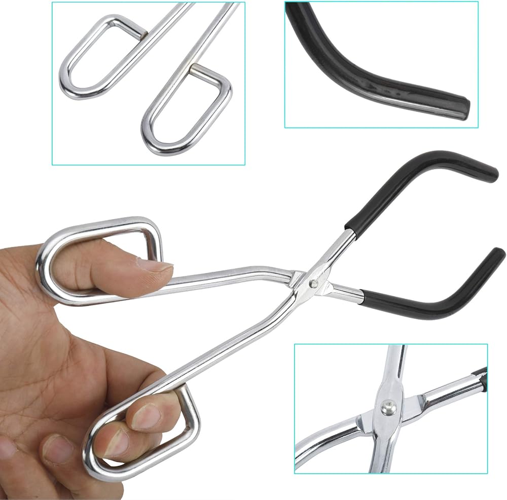 • 【Crucible Tong & Breaker Tong】: Crucible Tong is used to clamp the crucible for heating, or to put the crucible into the heat source (such as gas lamp, electric furnace, crucible clamp, muffle furnace, alcohol lamp). When heating the crucible, it is used to clamp the crucible or cover the crucible. Convenient anti-skid jaws for secure grabbing and handling. Beaker tongs are perfect for holding glass laboratory products.