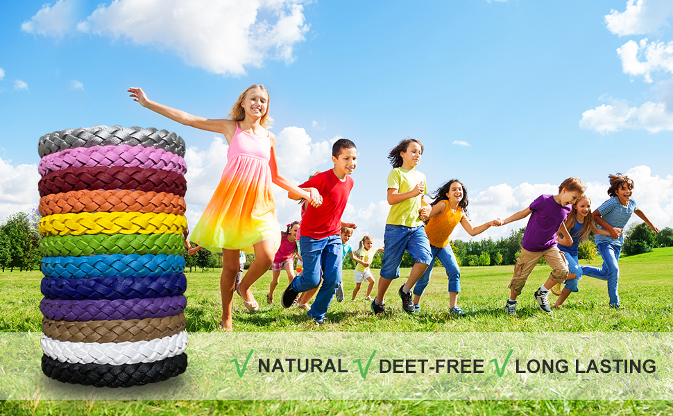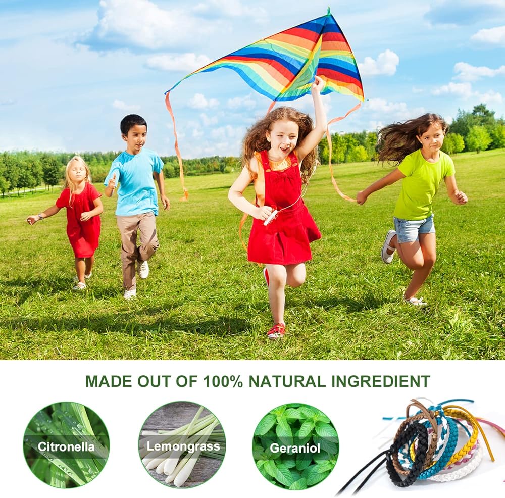 طبيعي وخالي من المواد الكيميائية - غير سام وآمن للاستخدام ضد البعوض والحشرات والحشرات المزعجة حيث أن أساورنا تحتوي على زيوت السترونيلا وعشب الليمون والجيرانيول العطرية. خالي من الديت وآمن للأطفال والرضع.