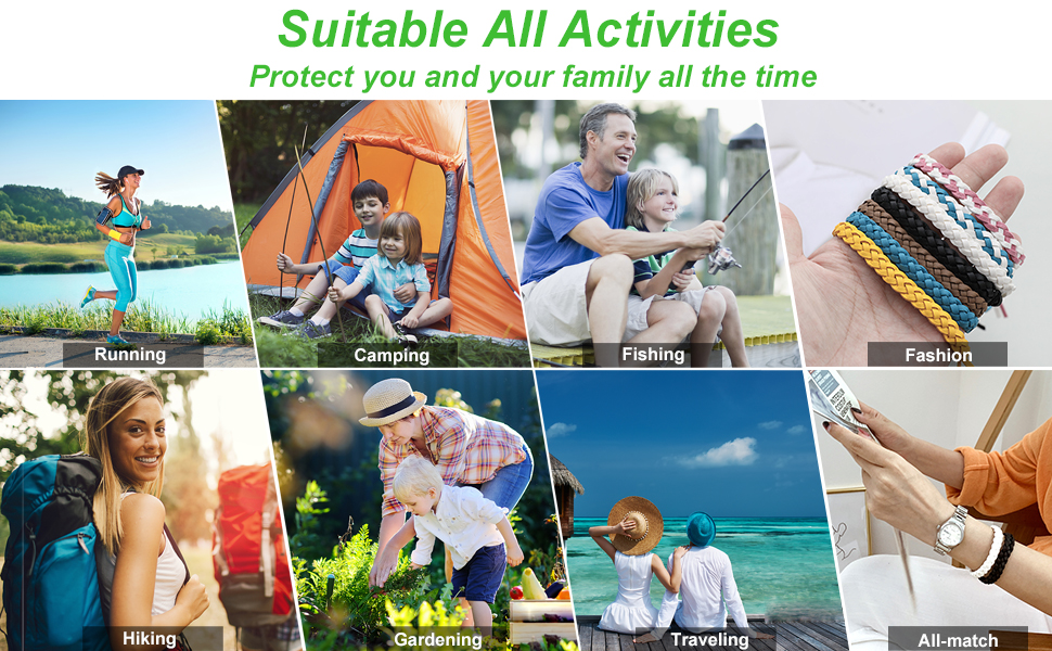 حماية طويلة الأمد - توفر أحزمة مكافحة الآفات لدينا 300 ساعة من الحماية. مثالية للأنشطة الخارجية مثل التخييم، والصيد، والجري، والتنزه سيرًا على الأقدام، والسفر، وصيد الأسماك، والشواء، والبستنة، والنزهات، ولعب الجولف، وحتى حفلات الشواء البسيطة.
