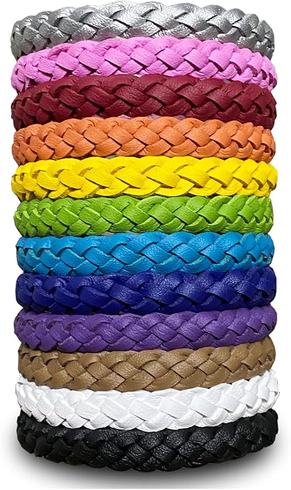 تصميم جلدي مضفر - تتميز أساور الحشرات لدينا بتصميم مضفر، متطابق تمامًا وعصري، ومناسب لمجموعة متنوعة من الملابس والمناسبات.
