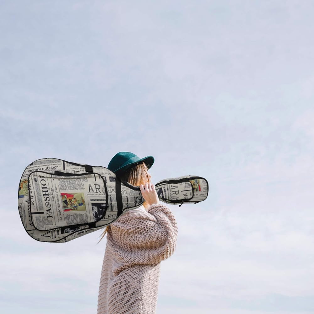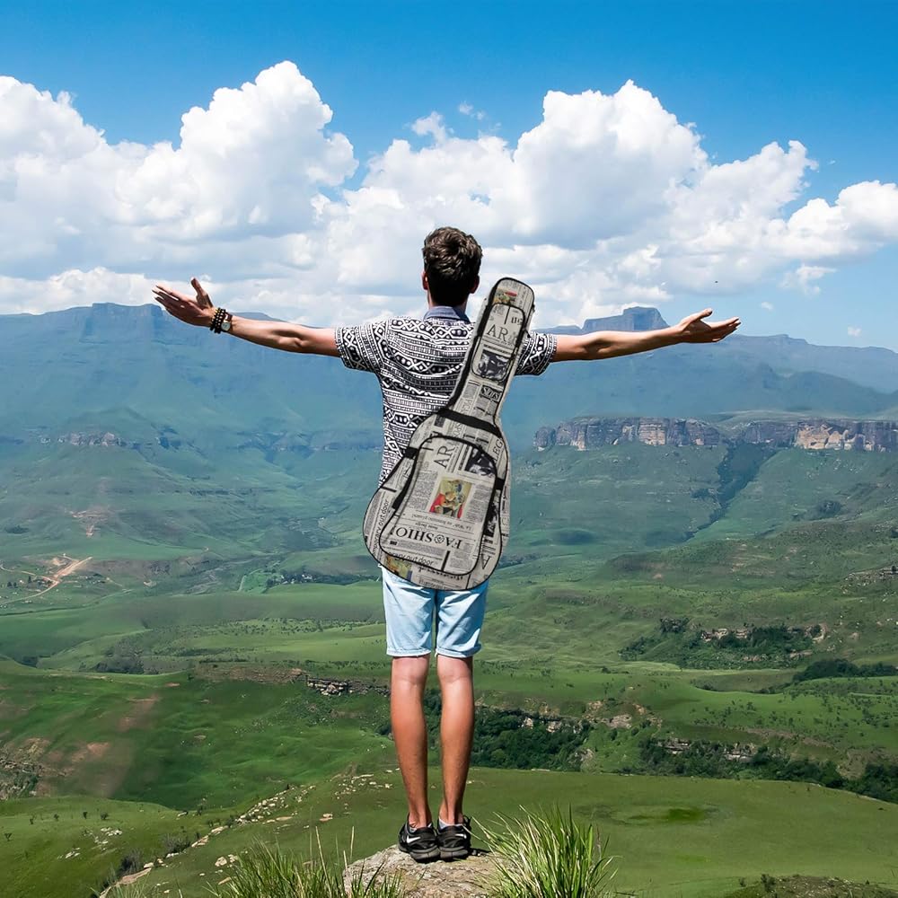 حقيبة جيتار EXCEART مقاس 40/41 بوصة على شكل صحيفة إسفنجية مبطنة لحمل الجيتار حقيبة ظهر جيتار مقاومة للماء قابلة للتعديل حقيبة جيتار كلاسيكية هدية (نمط عشوائي)