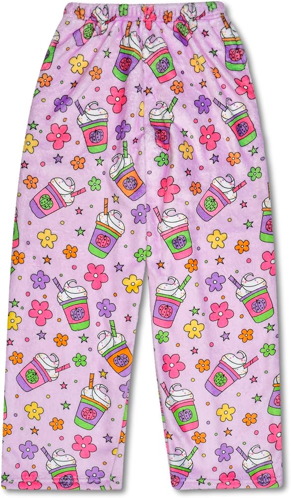 It doesn't get any more soft and cuddly than this! These plush pants are just the thing for getting comfy and cozy - and the fun prints make them anything but a yawn! These casual pants feature front slash pockets and are perfect for comfortably doing homework, watching tv, hanging with friends at camp or just chilling out in your own unique way! Extra soft, super silky machine washable fleece is 100% polyester for easy care. Available in children's sizes X-Small (4-6), Small (6-8), Medium (10-12) and Large (14).