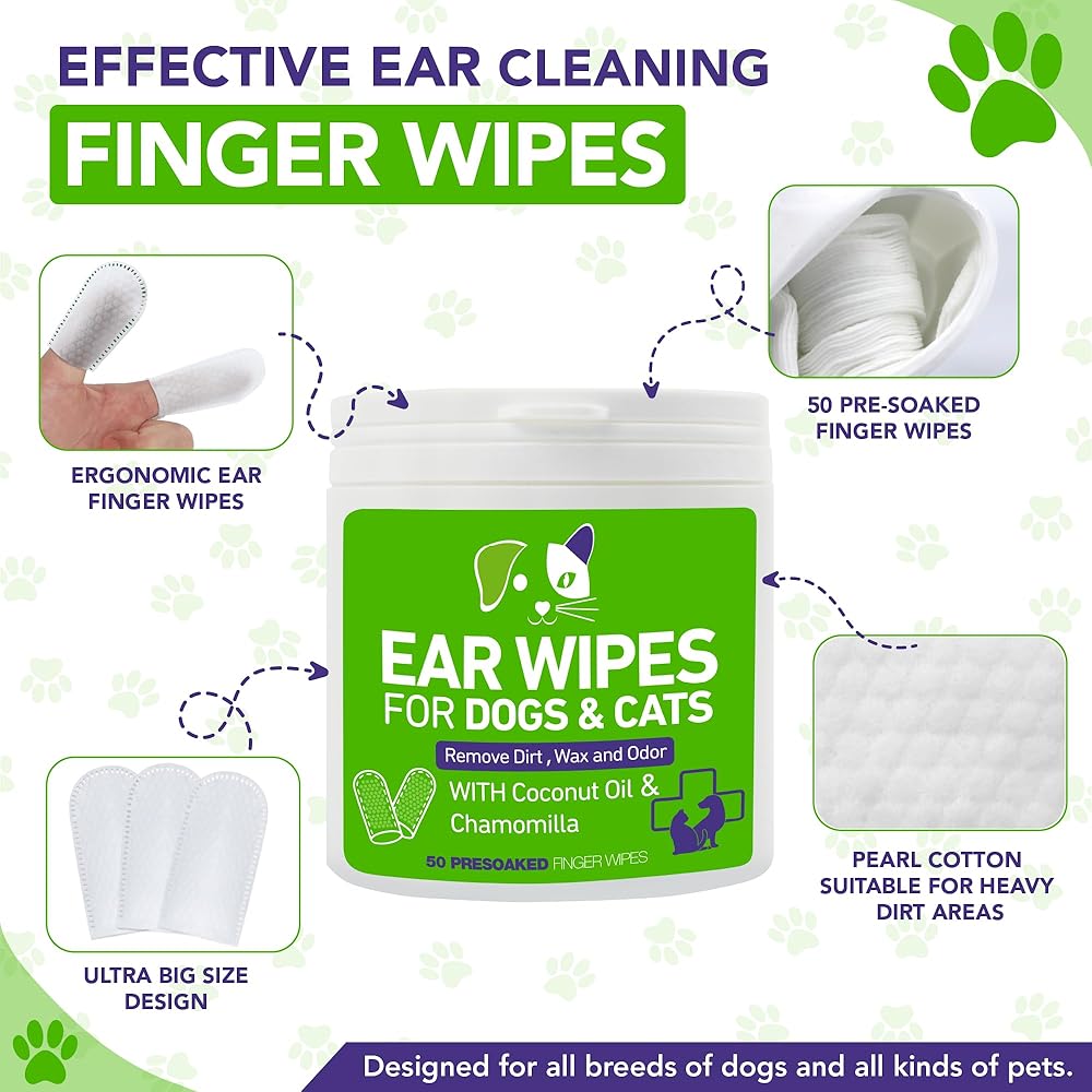 • تفضلها الحيوانات الأليفة - تفضل القطط والكلاب مناديل أصابع تنظيف أذن الحيوانات الأليفة الخاصة بنا على مسحات الأذن أو قطراتها، مما يجعل تنظيف الأذن تجربة خالية من التوتر. قم بتقوية العلاقة مع صديقك ذو الفراء مع الحفاظ على نظافة أذنه دون عناء.