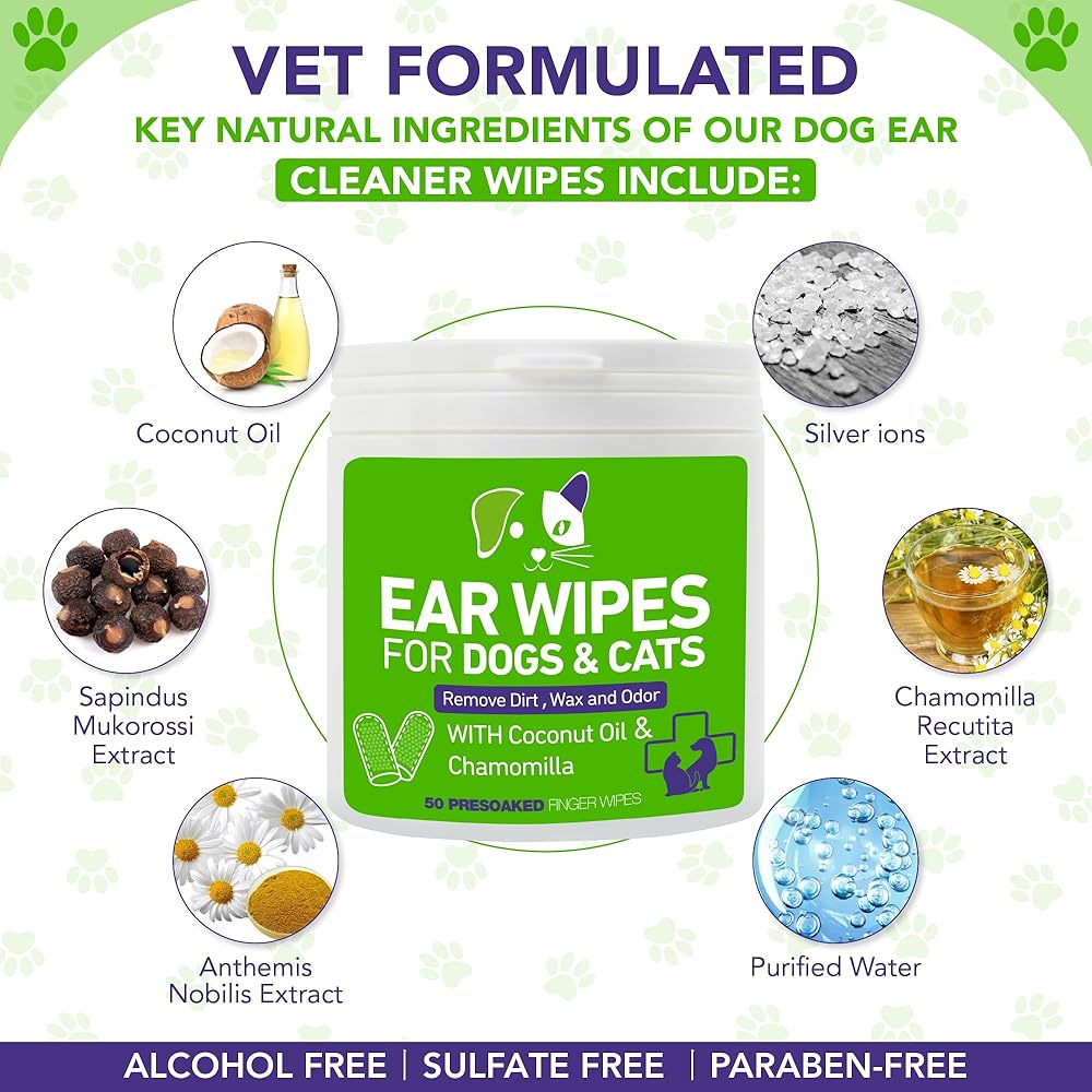 • إعادة تعريف الراحة - مع 50 منديل مبلل للأصابع مبللة مسبقًا في كل عبوة، توفر مناديل أذن القطط الخاصة بنا حلاً مريحًا وسهل الاستخدام لمربي الحيوانات الأليفة. لا مزيد من المعاناة أو الضغط، اجعل وقت تنظيف الأذن سريعًا وسهلاً وغير مؤلم لك ولحيوانك الأليف.