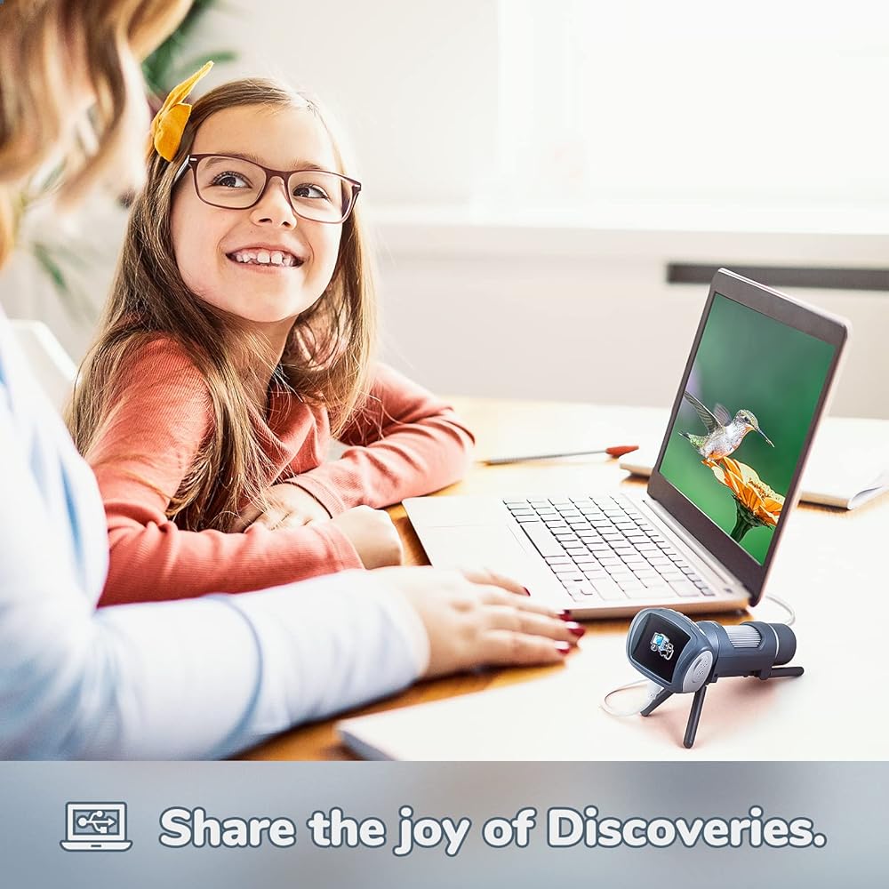 【اتصال بسيط بجهاز كمبيوتر يعمل بنظام Windows】لا يمكنه فقط التقاط الصور والفيديو، بل يمكنه أيضًا الاتصال بجهاز كمبيوتر يعمل بنظام Windows لعرض الصور في الوقت الحقيقي، ويمكن للأطفال تشغيل الكمبيوتر بسهولة لالتقاط الصور والفيديو. اجعل من السهل على الأطفال اكتشاف ملذات الطبيعة والعلوم ومشاركتها مع الأصدقاء.