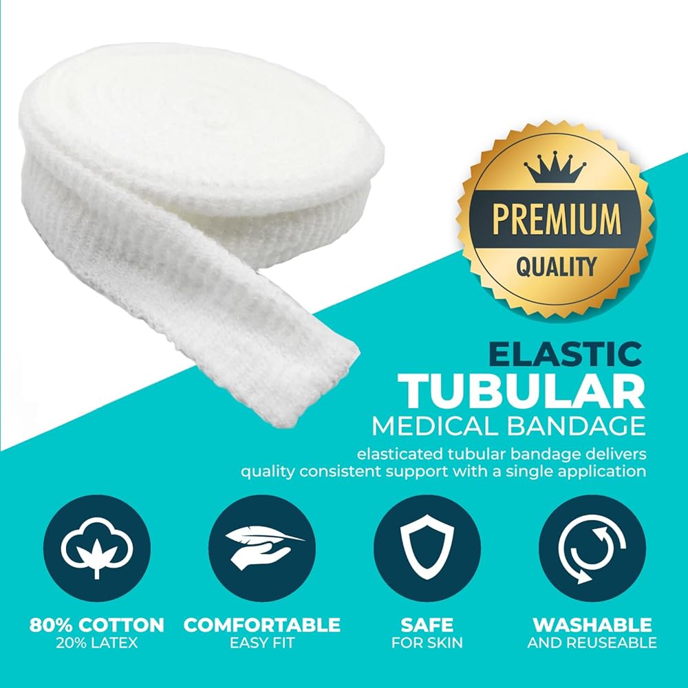【BREATHABLE MATERIAL】 The tubular stretch bandage is made from polyester knitted with elastic net. Provides flexible and breathable open weave that is light and soft, comfortable to use, and can keeps the skin cool and dry. Allows for wound recovery.
