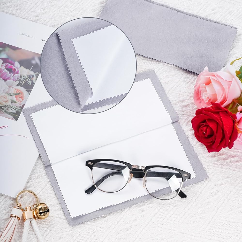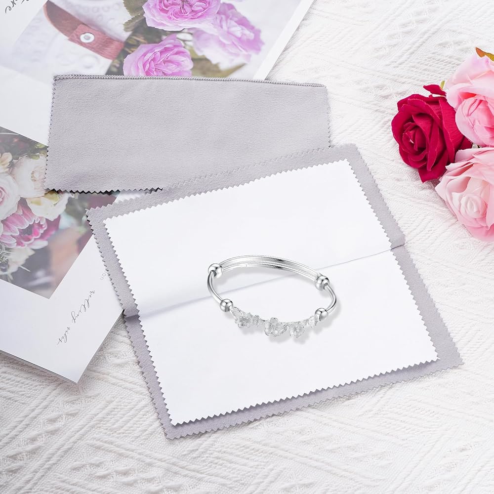 Size:Outer light gray jewelry cleaning cloth:7.9 inches/20cm x 7.5 inches/19cm; inner white jewelry cleaning cloth:7.1 inches/18cm x 6.7 inches/17cm.