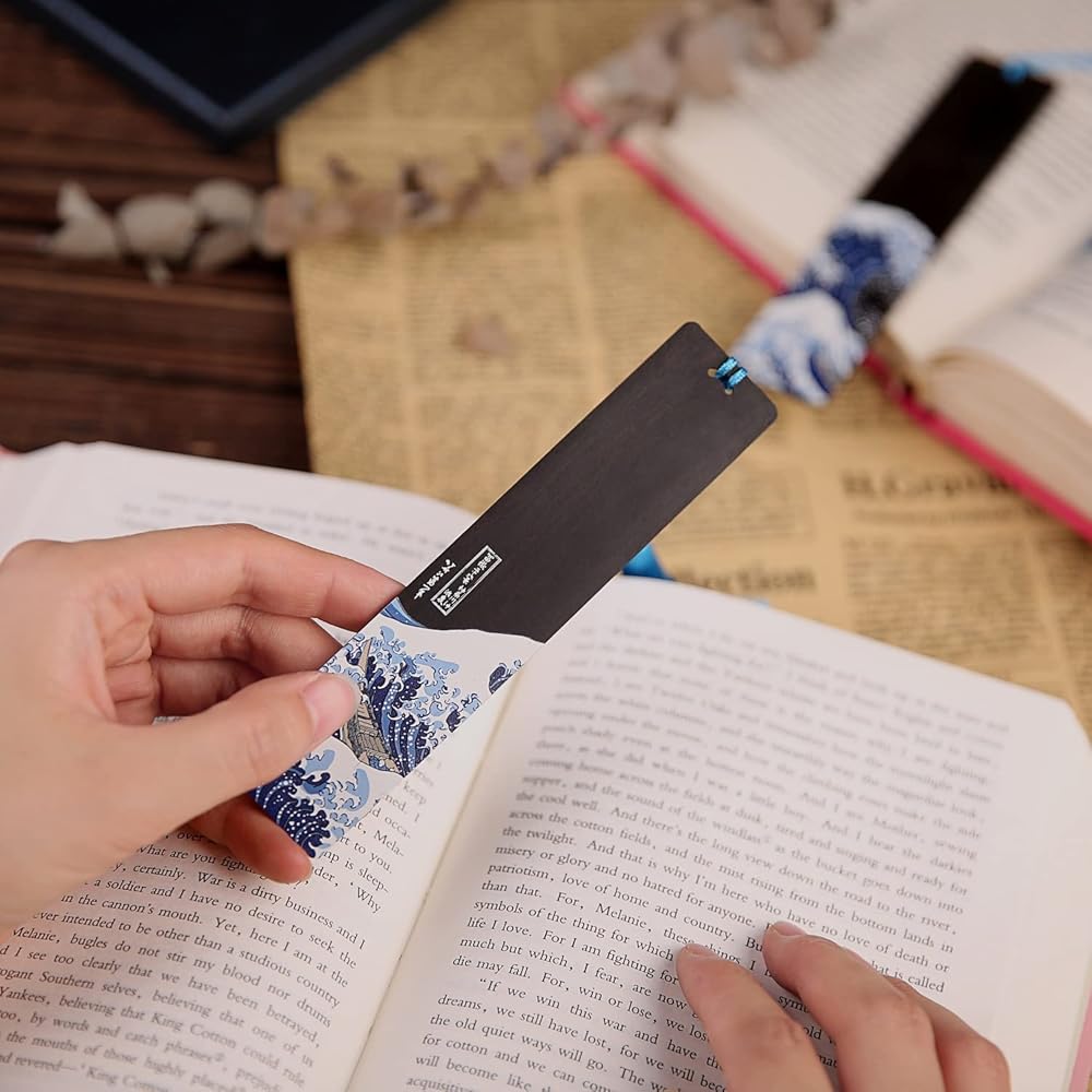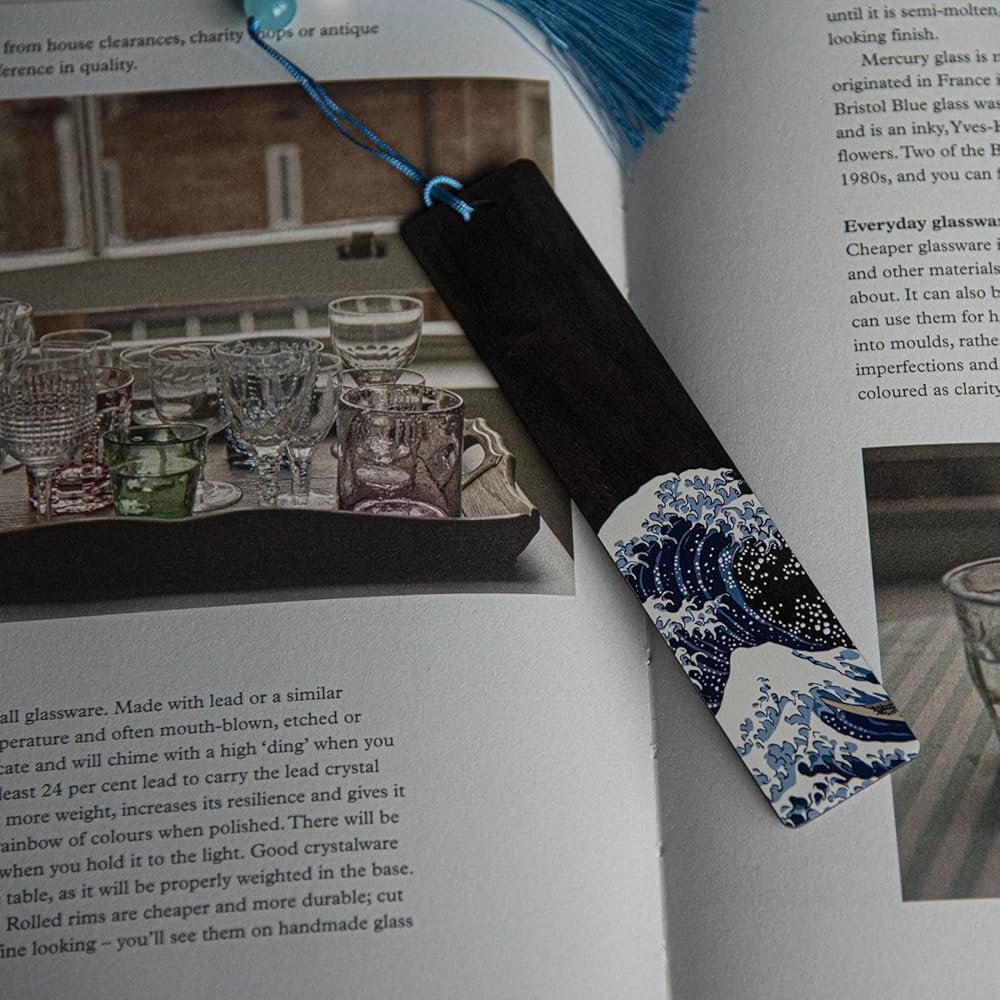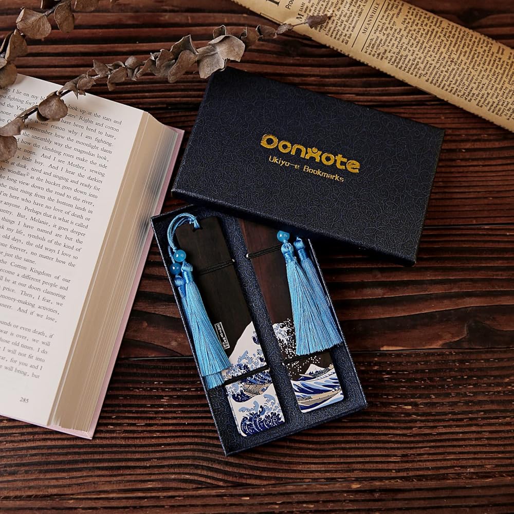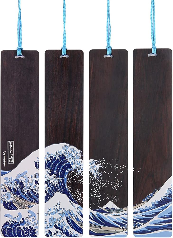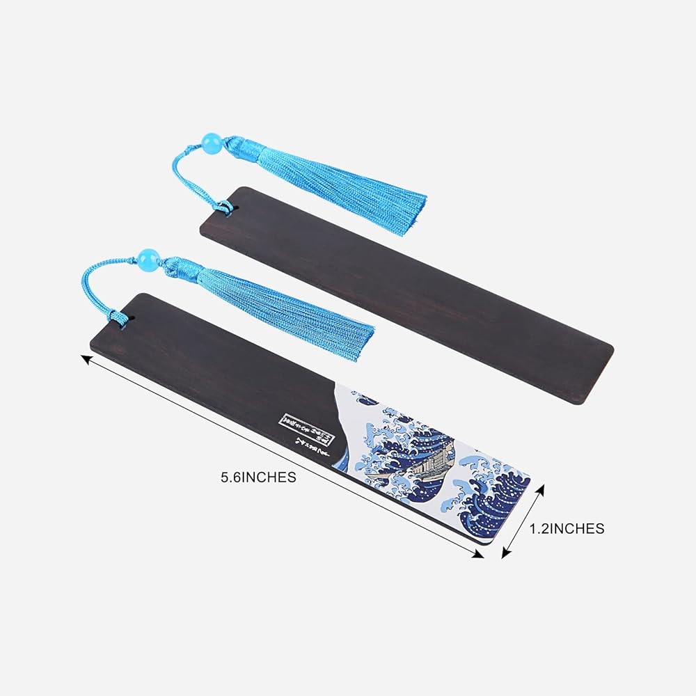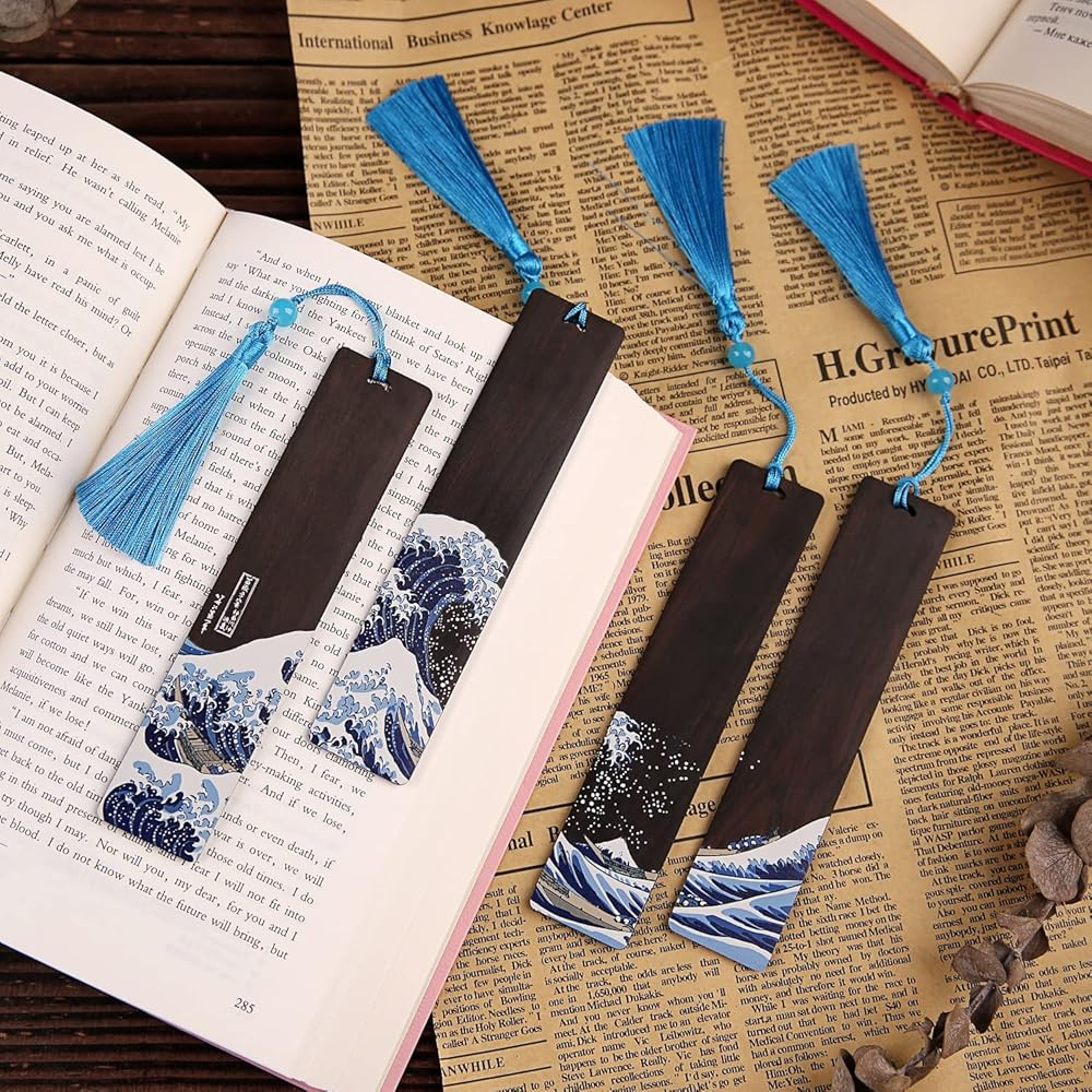 إشارة مرجعية Donxote مكونة من 4 قطع، إشارات مرجعية يابانية Ukiyo-e لمحبي الكتب، مجموعة صندوق هدايا لعلامات الكتب الفنية الخشبية المصنوعة يدويًا مع شرابة، هي هدية فريدة للرجال والنساء والأطفال - The Great Wave Off Kanagawa