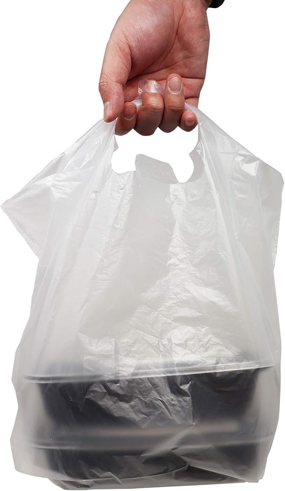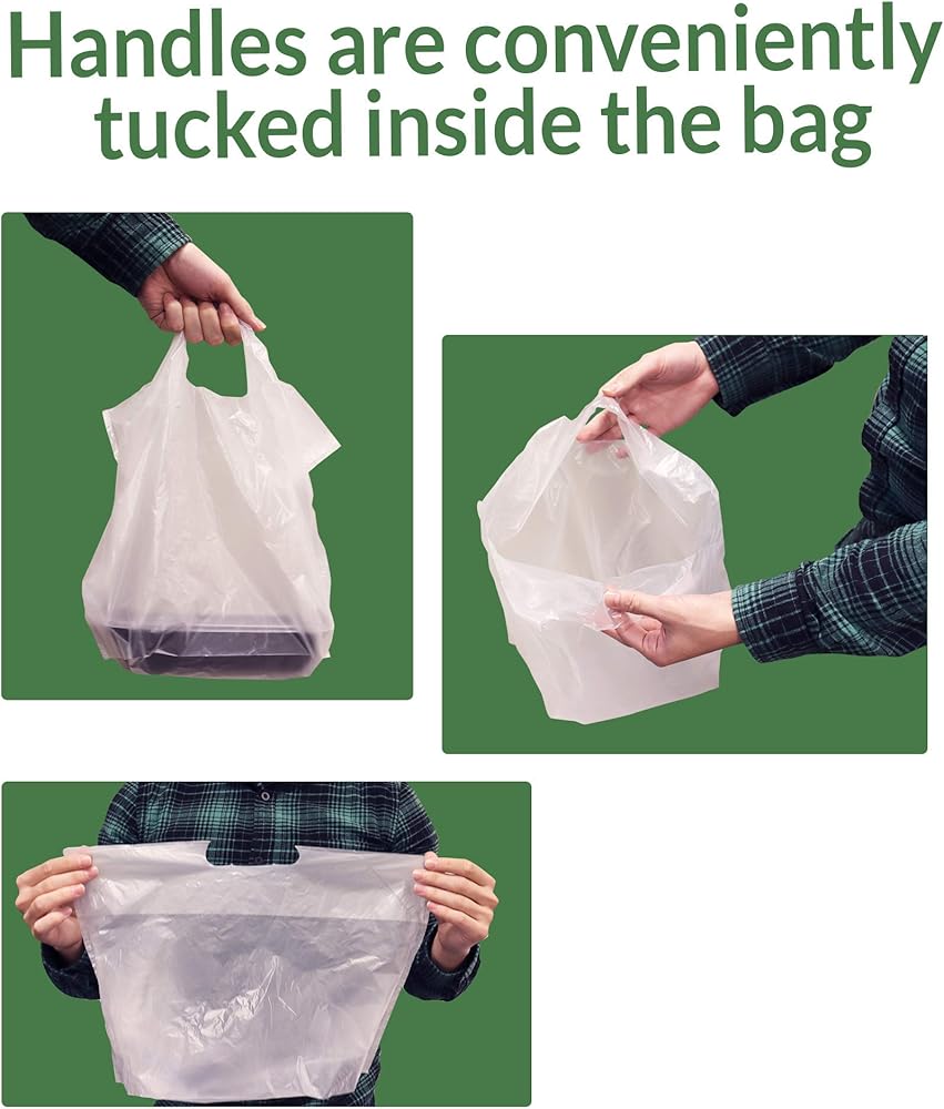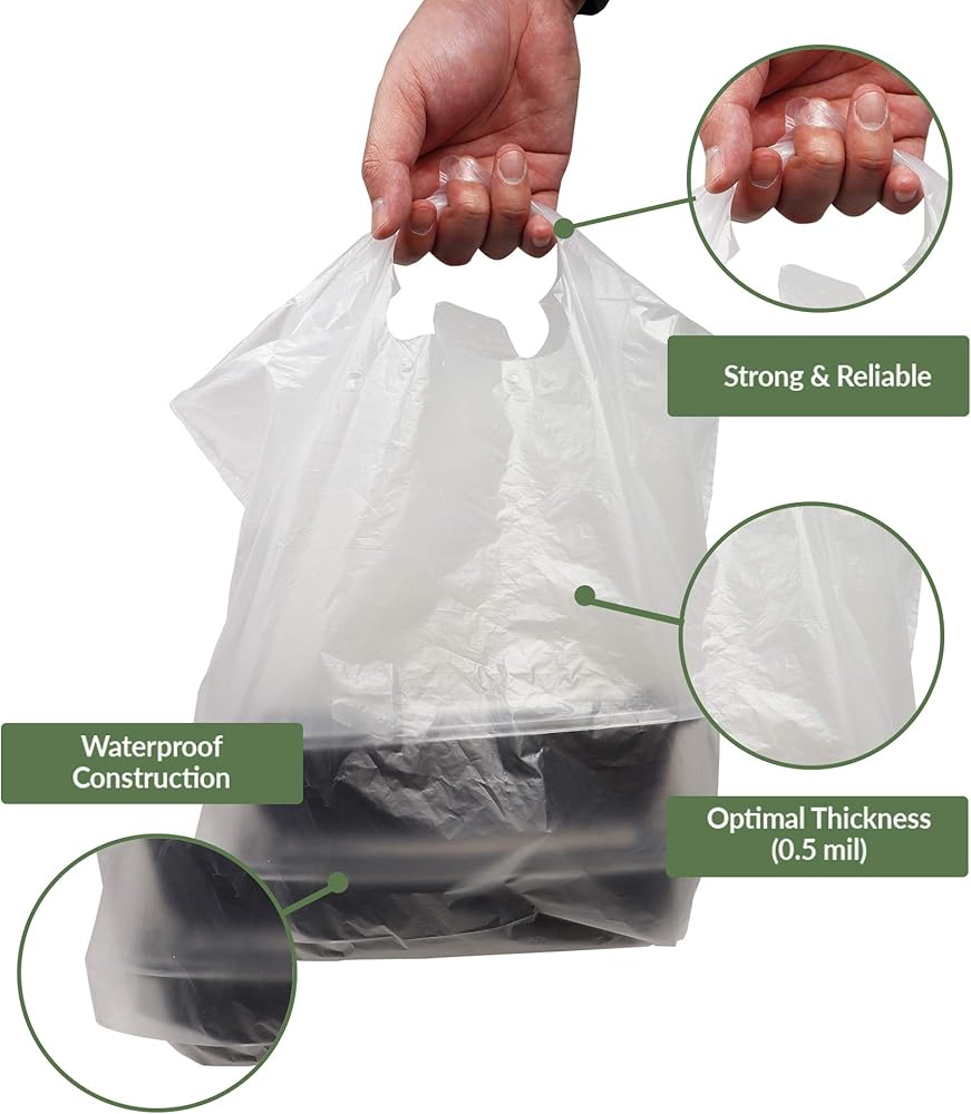 ريلي. حقائب للذهاب/أكياس الخروج (250 قطعة) (صغيرة 16 بوصة طول × 8 بوصة عرض + 10.75 بوصة ارتفاع) أكياس بلاستيكية قابلة لإعادة الاستخدام مع مقابض/حقيبة تسوق - مقبض مقطوع بالقالب - أكياس بلاستيكية للأعمال والحمل وحقائب المطاعم