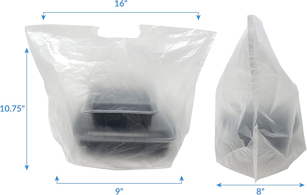• حقيبة بلاستيكية قابلة لإعادة الاستخدام| 16 بوصة طول (أعلى) × 8 بوصة عرض (أسفل) × 10.75 بوصة ارتفاع | قاع مربع | 250 كيس