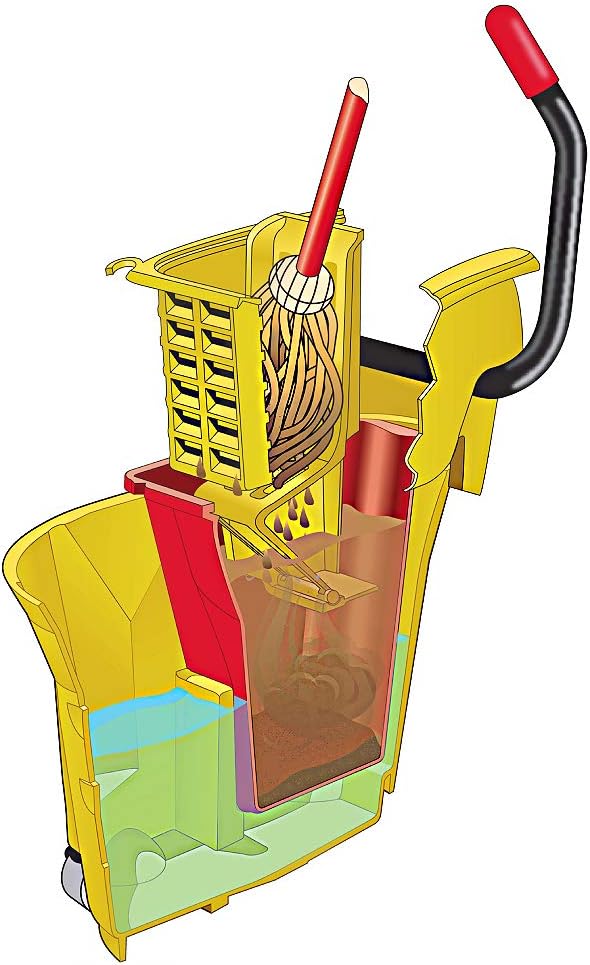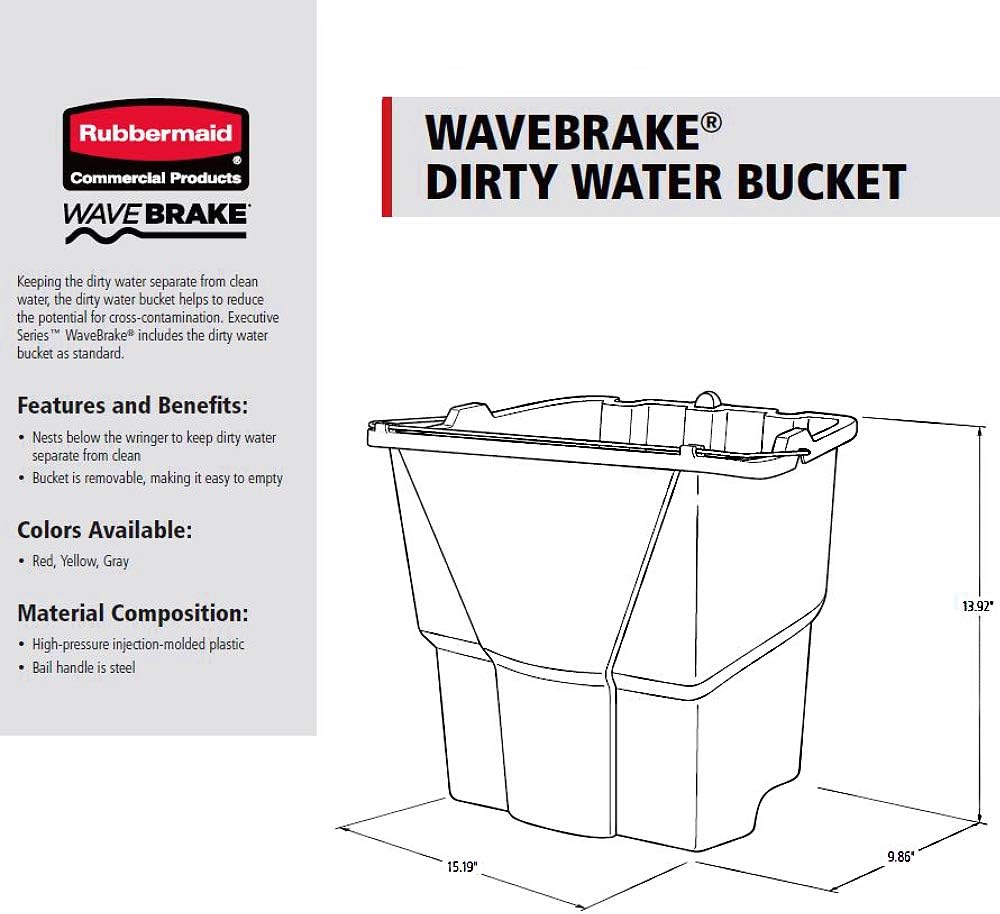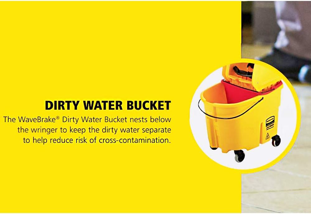 The Rubbermaid Commercial Dirty Water Bucket separates clean water from used for more efficient cleaning. By separating used water, this innovative mopping solution preserves the integrity of the cleaning water and reduces the amount of cleanser needed. This helps produce cleaner and less slippery floors and makes mop buckets easier to empty by dividing the liquid weight between clean and used water.