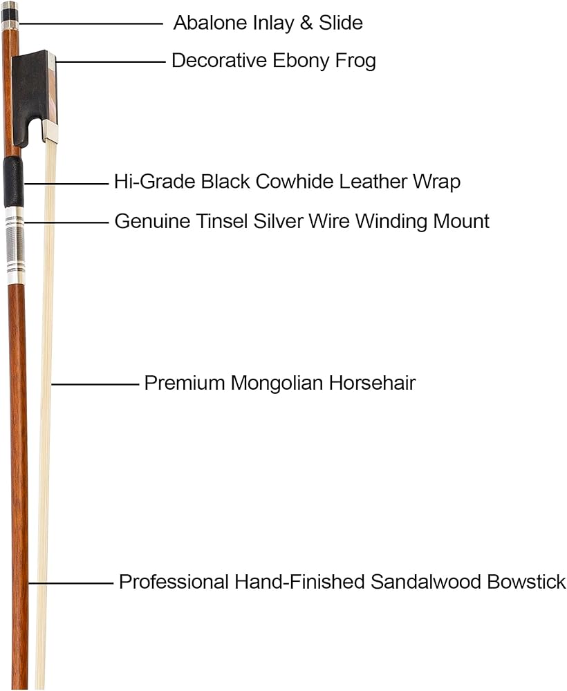 🎻 ارتداد طبيعي - لقد قمنا برعاية المواد عالية الجودة لمصممي القوس لدينا الذين يصنعون كل عصا قوس يدويًا. وهذا يضمن بناء سلس وقوس طبيعي لتوفير نقطة التوازن المثالية وتوزيع الوزن، مما يؤدي إلى تجربة لعب الكمان أكثر متعة.