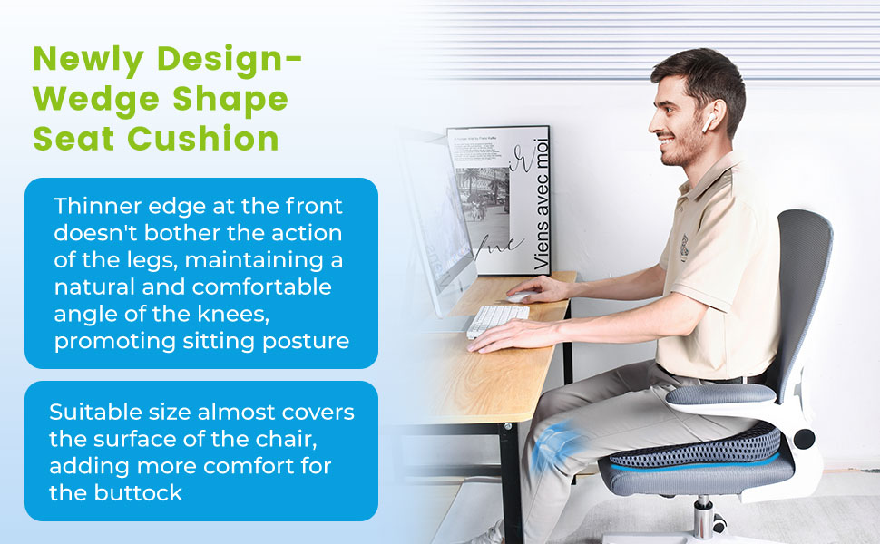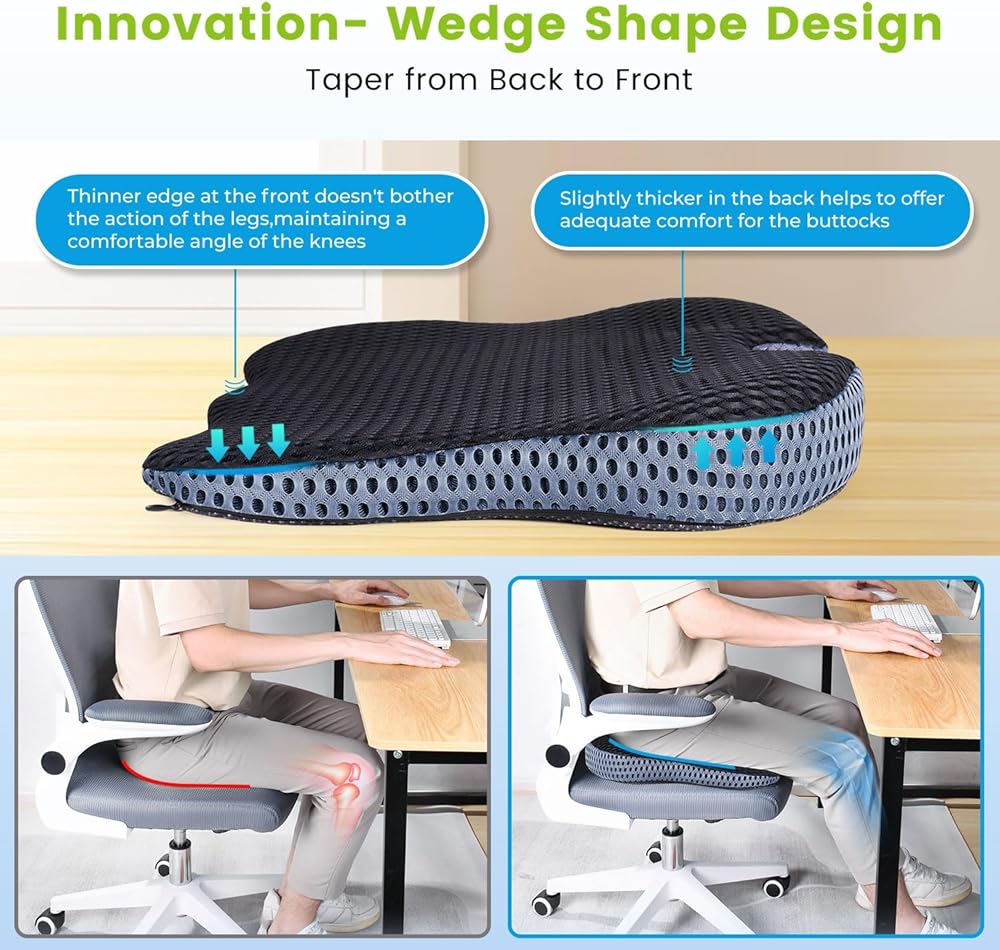 وسادة مقعد إسفينية للحفاظ على الزاوية الطبيعية للركبتين وتحسين الوضعية - وسادة مقعد ناعمة من الإسفنج الذكي لإطلاق العنان لراحة فائقة في المكتب والمنزل ومقاعد السيارة (غطاء شبكي، أسود)
