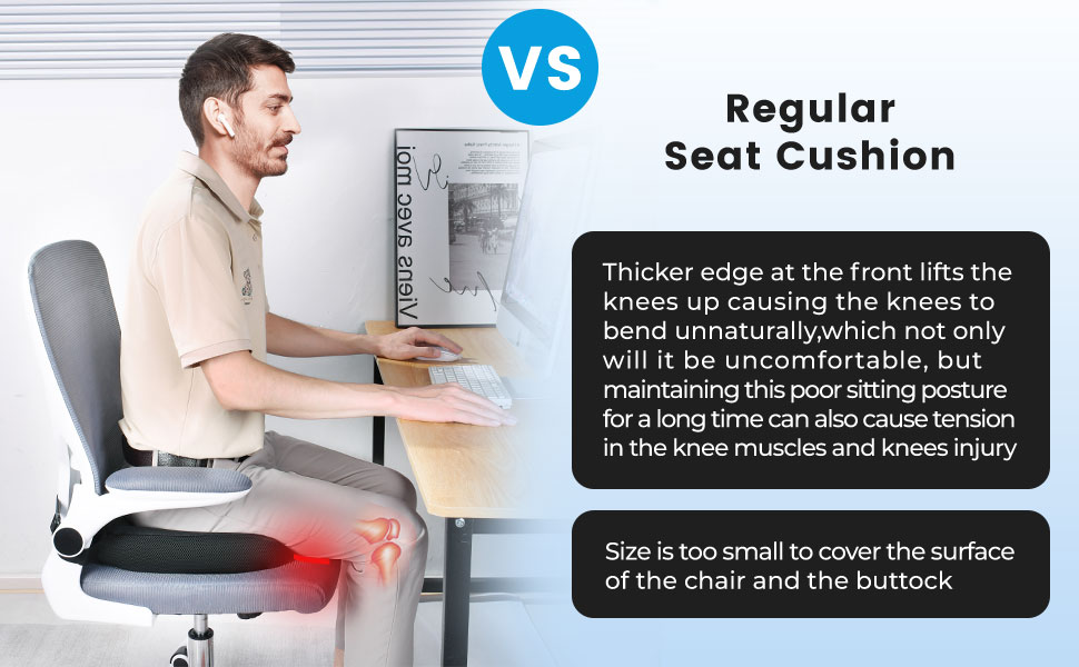 وسادة مقعد بتصميم مبتكر: سميكة قليلاً في الخلف تساعد على توفير راحة كافية للأرداف، والحافة الرفيعة في الأمام لا تزعج حركة الساقين، وتحافظ على زاوية طبيعية ومريحة للركبة.