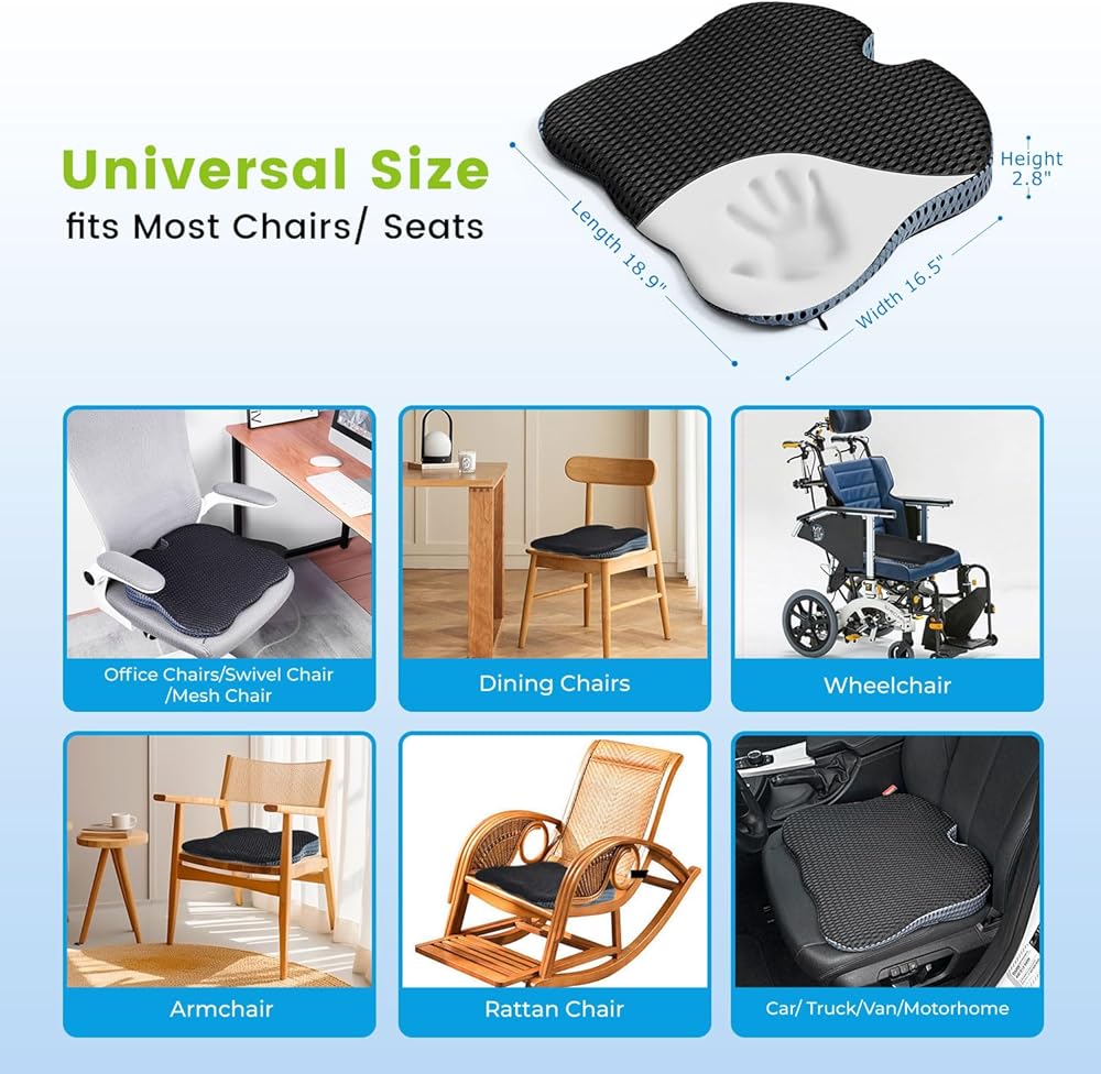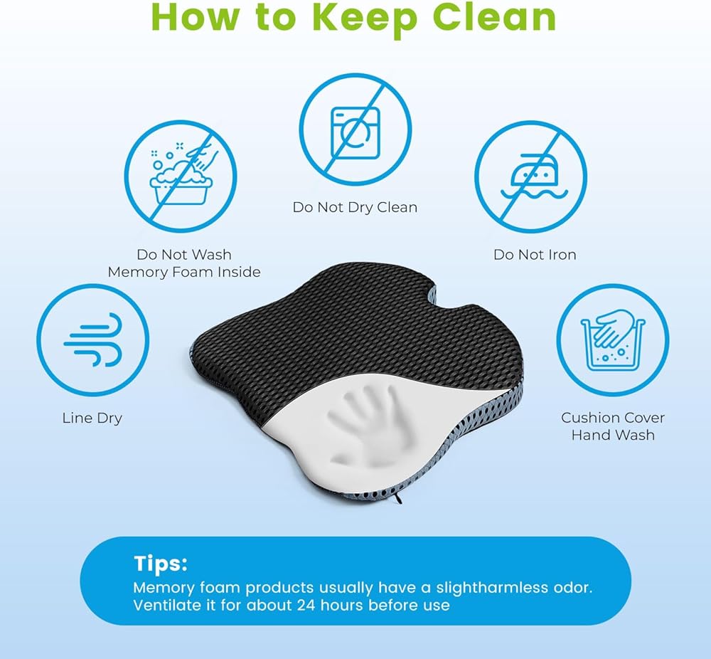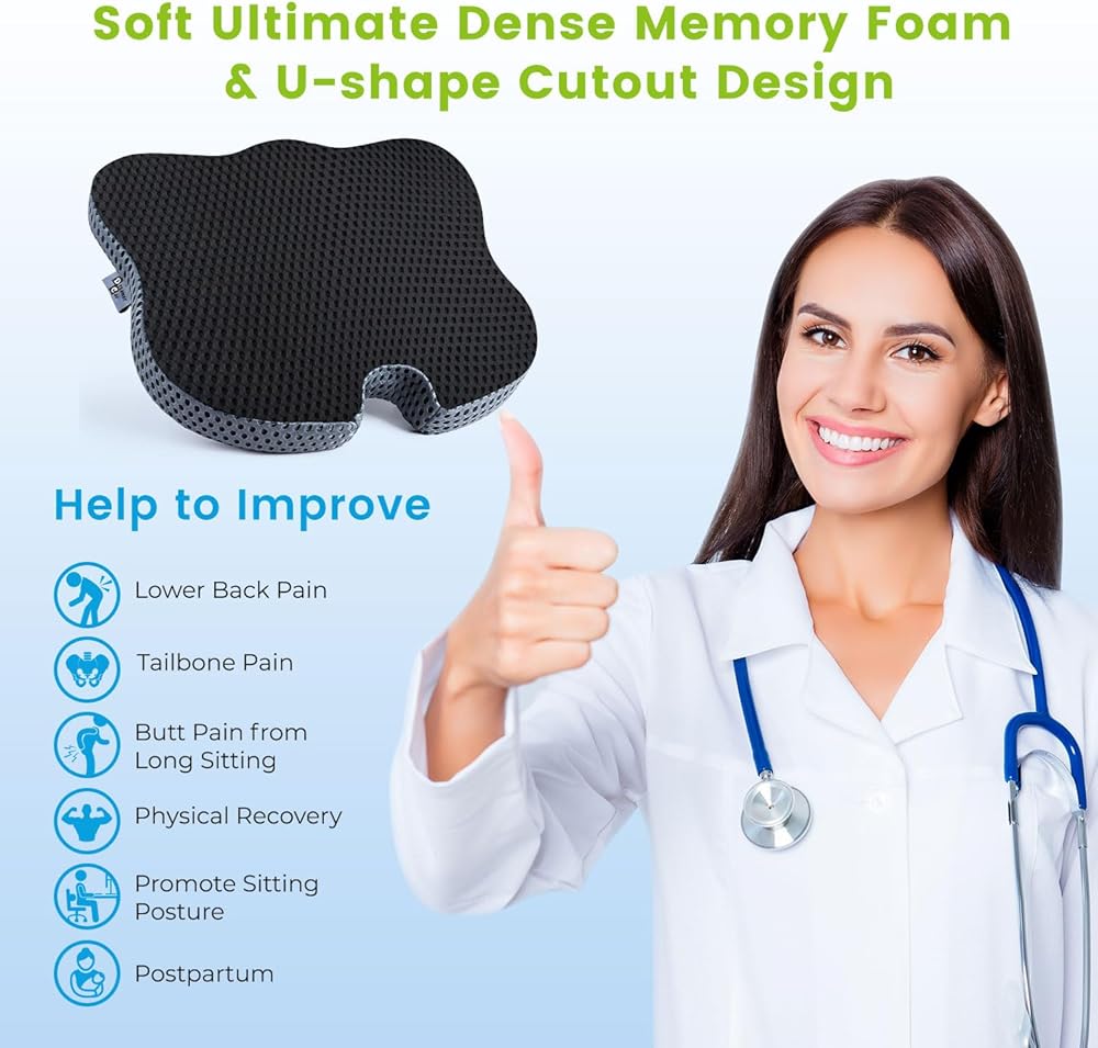 وسائد كرسي إسفنجية ناعمة للأرداف: وسادة كرسي المكتب هذه مصنوعة من إسفنج ميموري كثيف للغاية، وتتميز بالنعومة قليلاً ولكنها داعمة. عند الجلوس، ستغرق الوسادة قليلاً، مما يمنحك شعورًا جيدًا. وسادة تخفيف آلام عظم المؤخرة هذه مناسبة لأولئك الذين يعانون من آلام أسفل الظهر وألم عظم المؤخرة وألم المؤخرة الناتجة عن الجلوس لساعات طويلة. كما أنه مفيد للتعافي الجسدي، وتعزيز وضعية الجلوس وبعد الولادة.