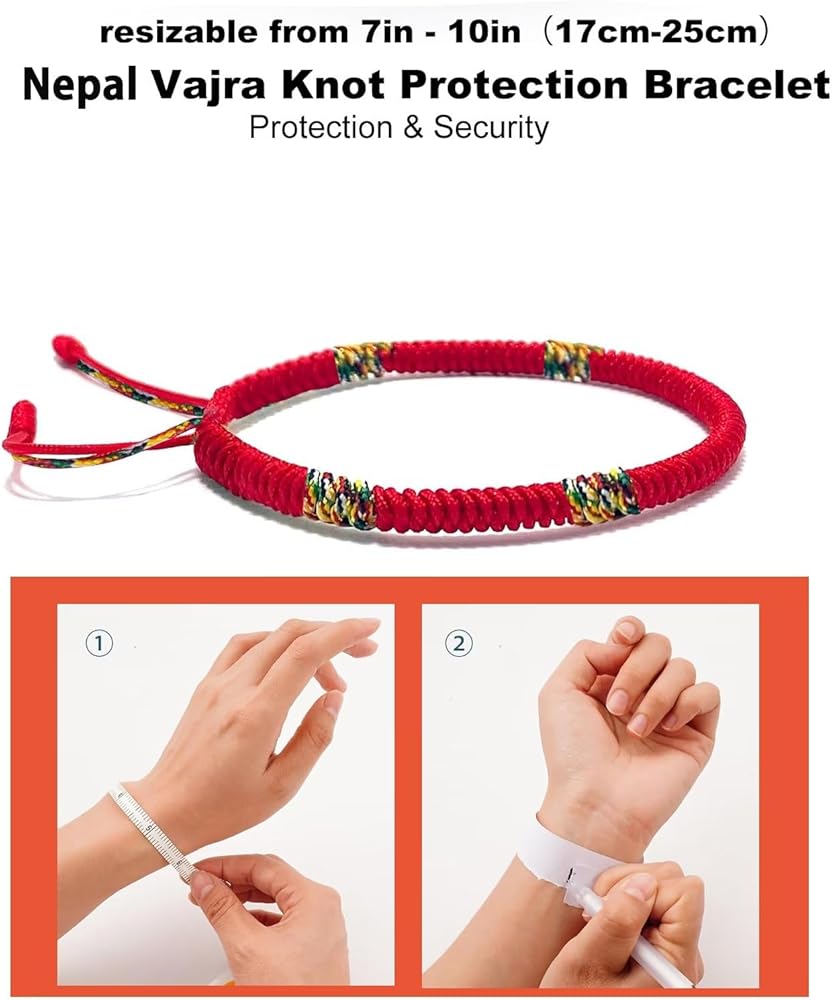 • تم تصنيع كل سوار منسوج بدقة على يد رهبان نيبال، بينما كانوا يرددون الشعارات المقدسة، وبالتالي يضمنون مباركتهم حقًا. التمائم المضمنة مباركة ويمكن حملها في محافظ لتعزيز الطاقة المحيطة بمن يرتديها. تذكر، بدون البركات، فهي مجرد إكسسوارات عادية.