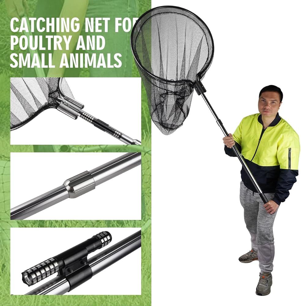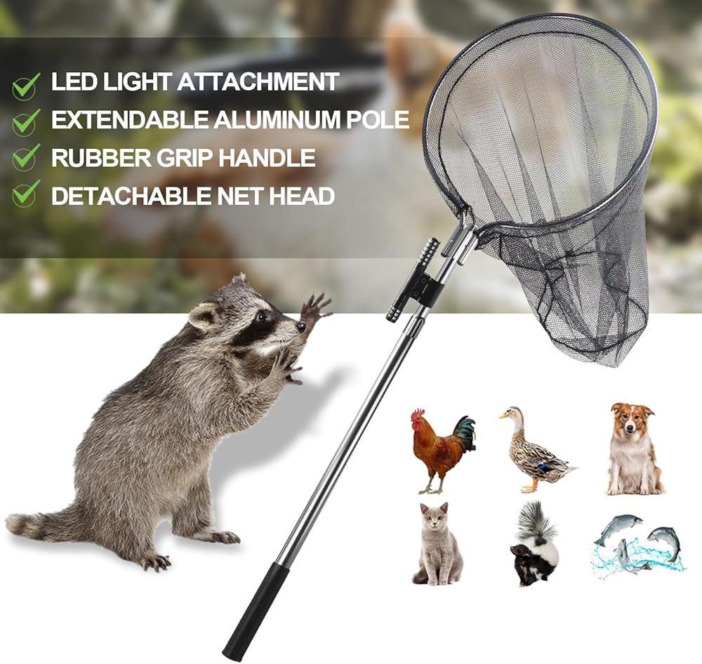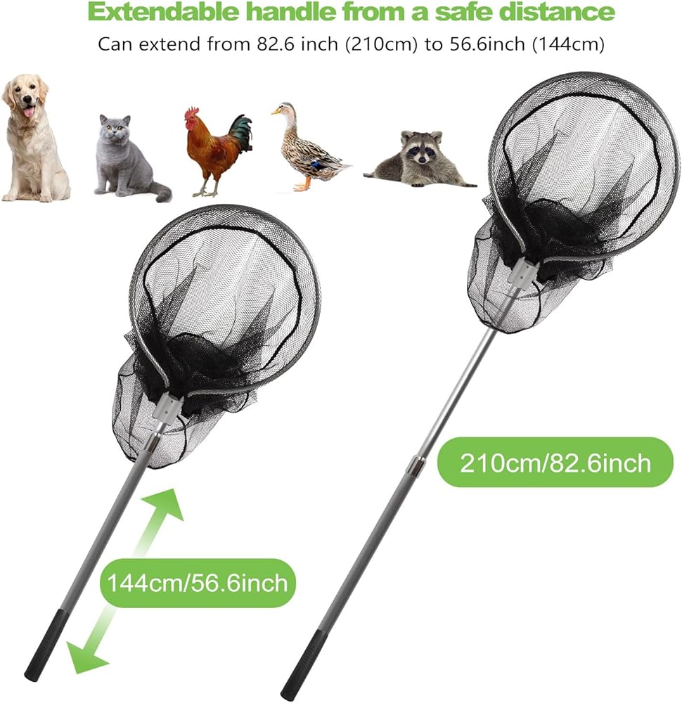 هيكل من الألومنيوم: مصنوع من الألومنيوم عالي الجودة لتصميم خفيف الوزن ومتين، مما يضمن أداة موثوقة لالتقاط الحيوانات أو شبكة صيد الكلاب واستخدامها مع شبكة صيد الحيوانات أو شبكة القطط أو شبكة الدجاج أو شبكة صيد الكلاب أو شبكة صيد الدواجن.