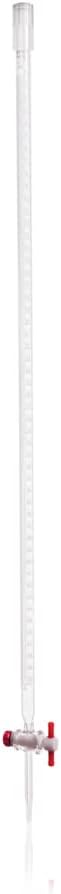 50mL Kimax precision bore burette is permanently marked with an individual serial number. Supplied with a Certificate of Graduation Accuracy. Designed from ASTM Specification E287, Class A requirements. Dust cap included. PTFE plug for all sizes is standard 2mm bore. Scale is a durable white ceramic enamel. Replacement stopcock is S6430-1. Kimble #: 17027F-50.