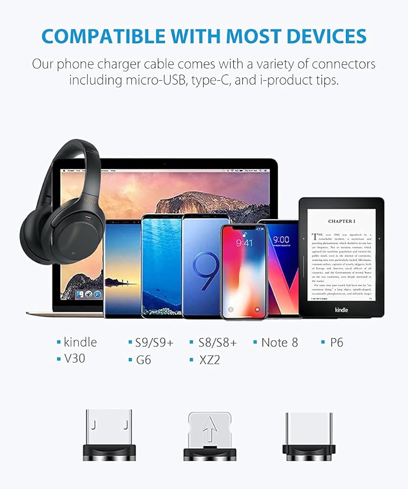 متوافق مع معظم الأجهزة - يأتي كابل شاحن الهاتف المغناطيسي الخاص بنا مع مجموعة متنوعة من الموصلات بما في ذلك USB الصغير والنوع C وأطراف i-product. إنه في الأساس الشاحن الوحيد الذي ستحتاج إليه على الإطلاق!