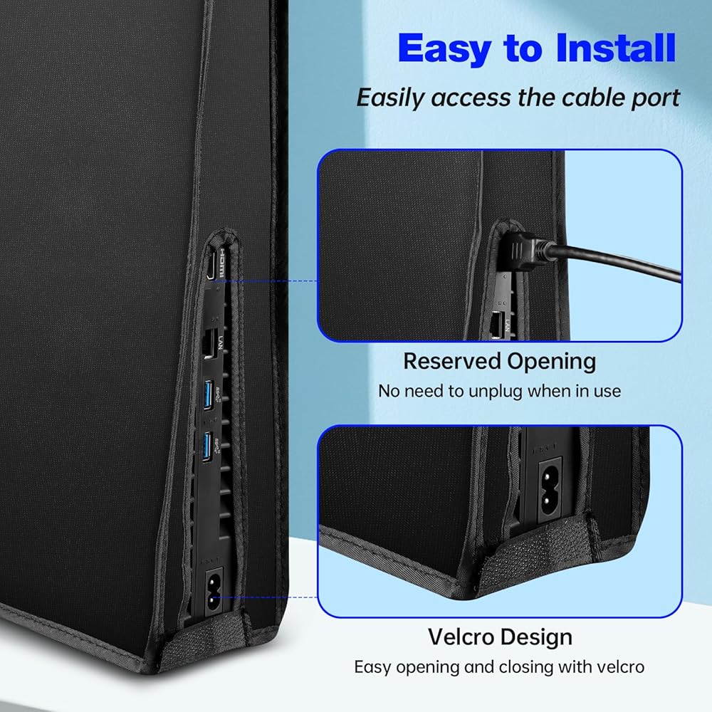 🏆الوصول إلى المنفذ الخلفي: قام غطاء الغبار PS5 Slim بقطع الكابلات بدقة في الخلف لتثبيت غطاء الغبار في مكانه، مما يسمح لك بتثبيته بسهولة دون الحاجة إلى فصل الكابلات.