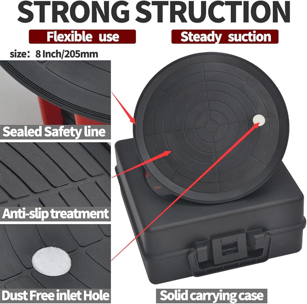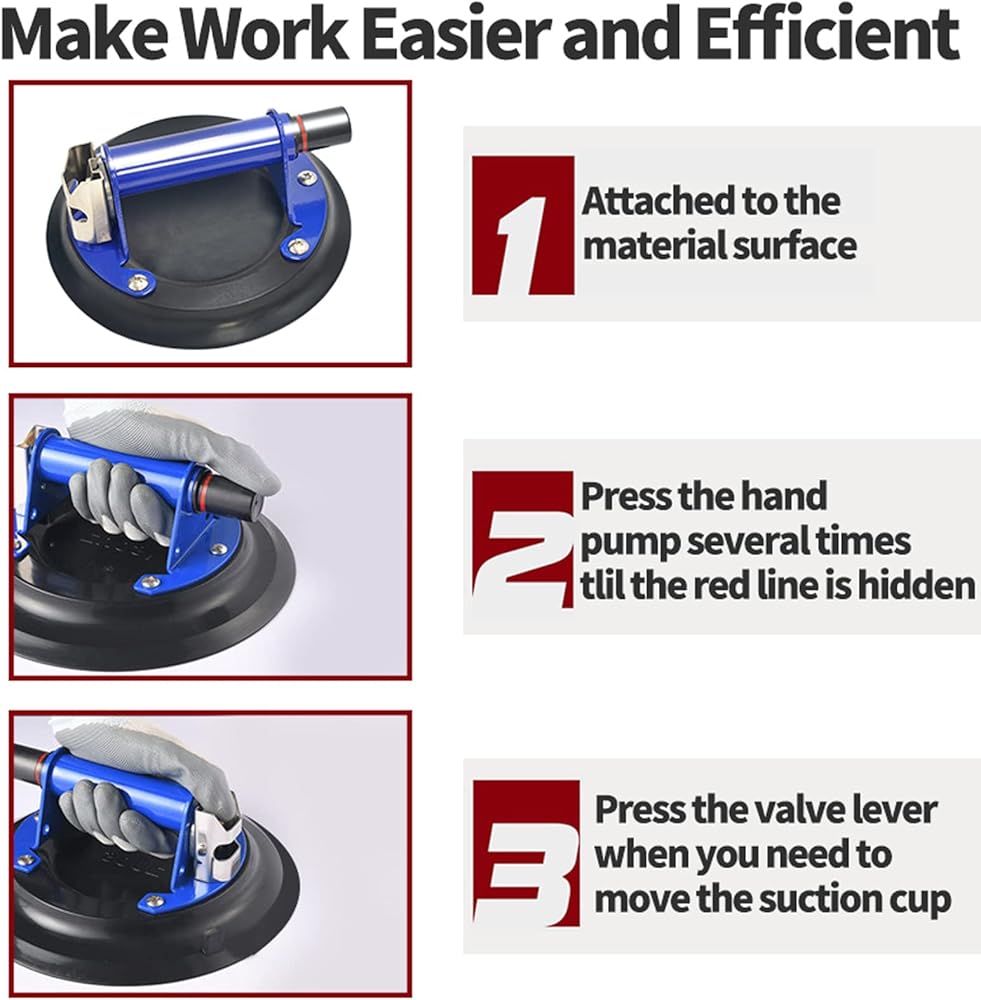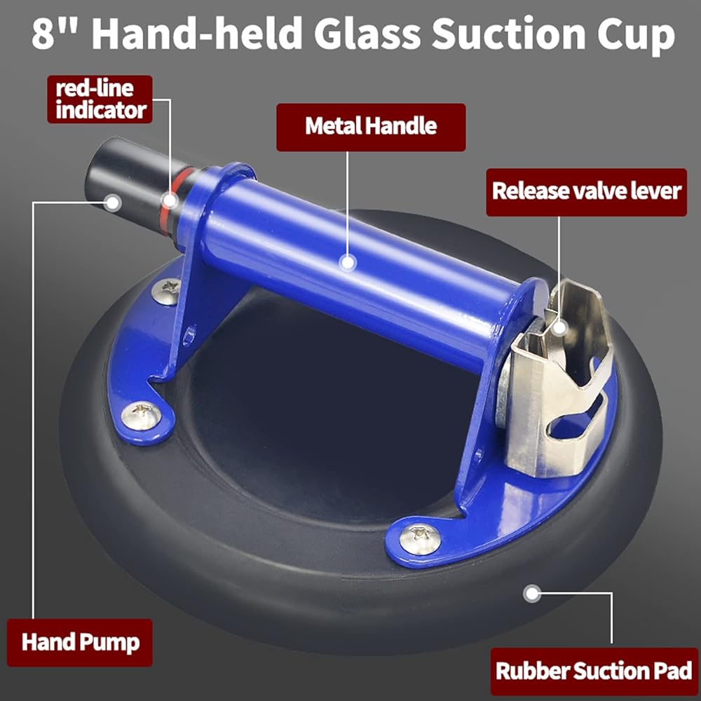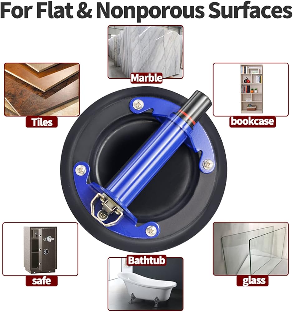 8" Glass Suction Cup Heavy Duty Hand-held Glass Lifter with Max Carrying Capacity 397lbs ★Specifications: Color: As picture shows Handle Type: Horizontal Suction Cup Size: 8 Inch Handle Material: Metal Safe Load Capacity: 397lbs (180kg) ★Features: 1. Large diameter rubber-suction, with strong suction, strong practicability and durability. 2. Excellent material make sure the suction plate is cold-resistant and heat resistant, not easy to deformation. 3. Press operation, deep sealing-edge, strong sealing, no leakage. Thickening air-bleed-valve can efficient protect disc body. 4. Wide applications, it can be used to move glass, tile, stone and other objects. ★How to use: 1. Attached the suction cup to the product surface (The red line will be visible). 2. Press the hand pump several times, pump the plunger until the suction cup attaches completely (When the red line is hidden, vacuum is sufficient for lifting). 3. Check the plunger frequently to make sure the cup remains securely attached. If the red line appears while lifting, re-pump the plunger immediately until the red line is hidden again. ★Package Includes: 1 x 8" Vacuum Suction Cup 1 x Carrying Case ★Notes: 1. Loaded surface must be smooth, flat, and non-porous. 2. Surfaces should be free of oil, grease, or water, otherwise slipping can occur. 3. Cleaning: Remove the screws and pump, clean the filter inside vacuum glass suction cups lift large glass 8 inch hand held glass lifter metal handle granite window replacement lifting
