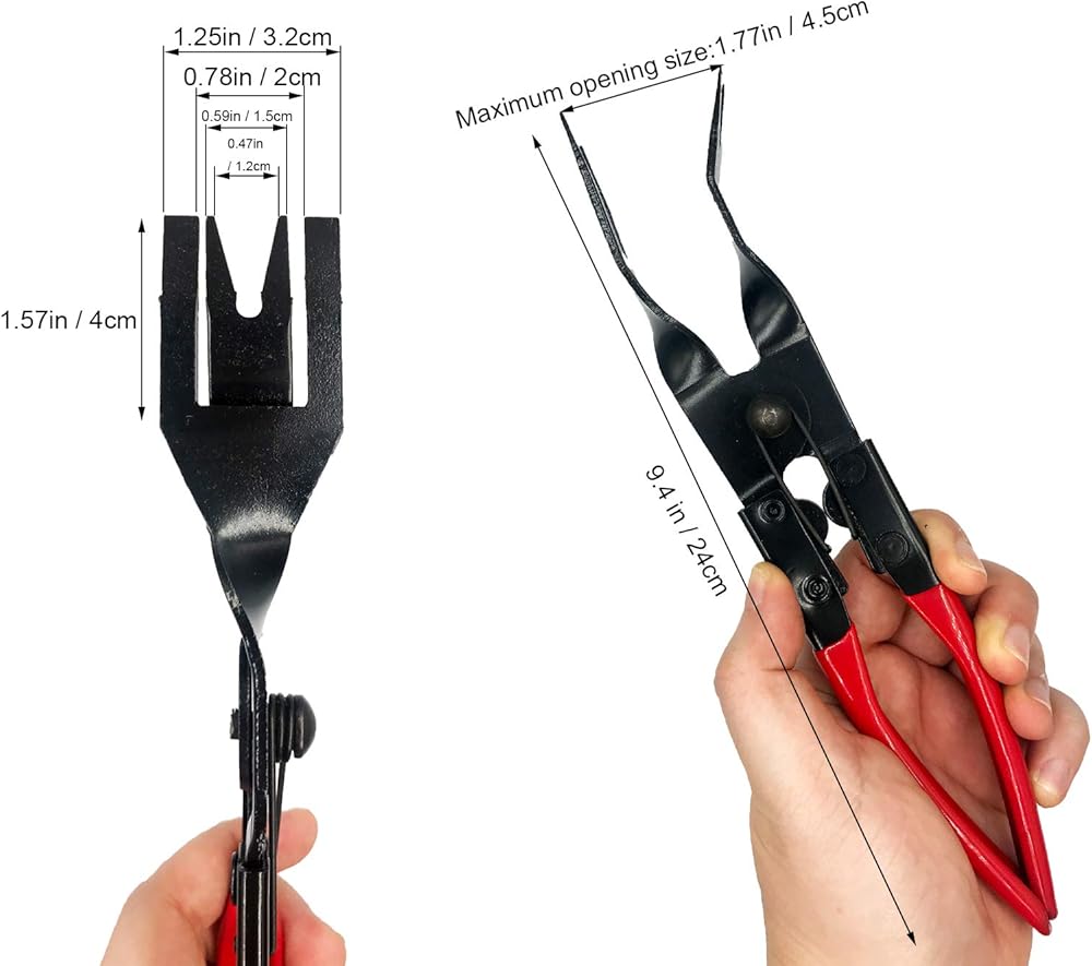 • ★Size:The 2-in-1 design, Maximum opening size:1.77in / 4.5cm clamp head to easily remove door upholstery, clips, door panel clips, and all other trim anchors and clips.